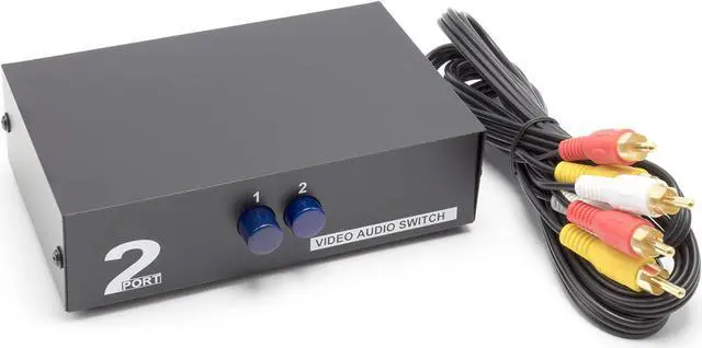 2IN-1-OUT - 2 Input 1 Output audio and video selector box switches between AV sources with button on front panel, without distortion or time loss - Connects 2 video devices to 1 TV set Easy to Install: Simple plug and play, push button design with no additional software or extra power source needed. BONUS RCA composite Cable included Premium Construction: Component switch box offers a high quality, compact design with a front component video selection buttons and color coded RCA connectors in the back for easy pairing A/V SPECS - Video - Input level Resistance - VS 0.8-1.0Vp-p/75ohm, Output level Resistance - VS 0.8-1.0Vp-p/75ohm Audio - Input level Resistance - 2V(RMS)/47Kohm, Output level Resistance - 2V(RMS)/1Kohm Perfect For: Ideal for DVD DVR VCR players, video game consoles (including Xbox, PS2, PS3, Wii, etc.) Comcast Xfinity box and more- connecting to TV with RCA connectors It's time to switch things up, with THE CIMPLE CO 2 Way AV Switch Box. If you're looking for a simple, push-button audio video switcher that allows you to connect multiple video devices via a standard yellow white red connector to your TV - this... is... it! A convenient switch control allows you the ability to switch 8 group AV input signals and one group of output into a compatible component, this device offers a quick, plug and play installation, and doesn't require any additional software or power supply. It's lightweight, compact design gives it a portable profile, making it ideal for any number of specialized needs. Included: 1 of RCA Video Switcher 1 of RCA Cable Ideal For: DVD, VCD and Blu-ray Players Satellite and Cable TV Cameras Gaming Consoles and many more! THE CIMPLE CO All of our high quality products are brought to you by our Family owned and operated company. We are located in Utah, "The Beehive State," here in America; where we have become a leading manufacturer and provider of high quality and durable electronic accessories along with OEM parts and replacements. Our products are backed by our amazing warranty and a satisfaction guarantee, including 100% US based customer assistance.