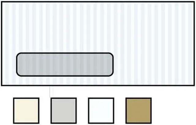 4-1/8" x 9-1/2" ( 4.125" x 9.5" ), Poly Window Envelope, A Style Window 1-1/8" x 4-3/4" Window Size, 3/4" From Left, 1/2" From Bottom, Western Groove, Grooved White Sulphite Paper, SFI Certified, Grooved Finish, Side Seam, Flap Down, Remoistening Seal, 500 Qty / Box, 2500 Qty / Ctn, 7 lbs. per Box