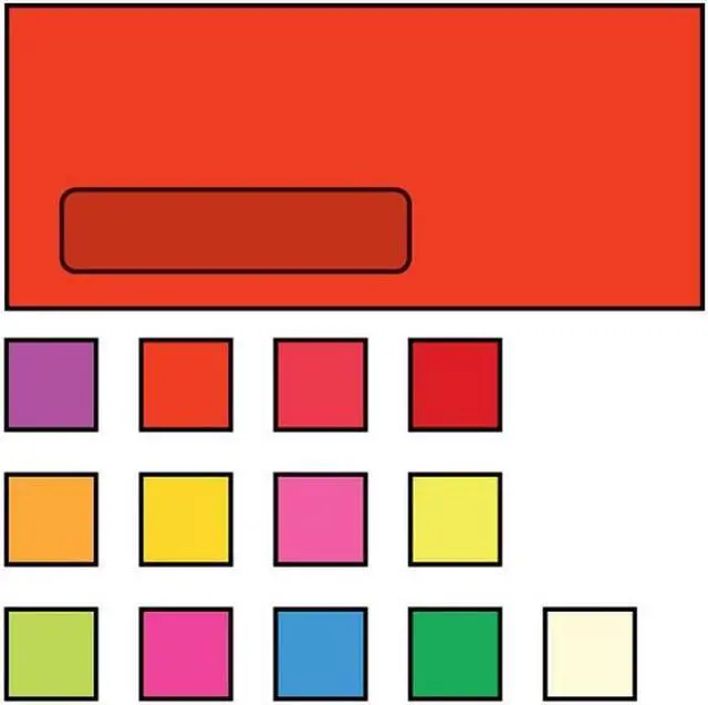 4-1/8" x 9-1/2" ( 4.125" x 9.5" ), Poly Window Envelope, A Style Window 1-1/8" x 4-3/4" Window Size, 3/4" From Left, 1/2" From Bottom, Starburst, Recycled Brightly Colored Sulphite Paper, Paper