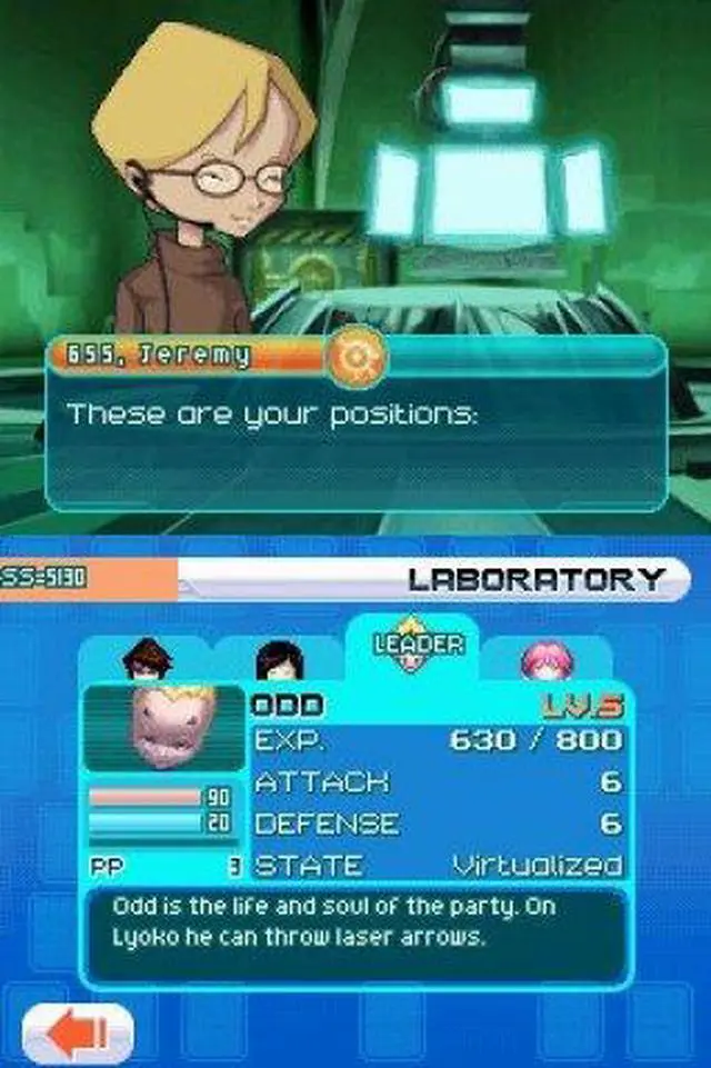 | Features | Explore the five different environments of the Digital World: Forest, Desert, Mountains, Ice field and Volcano territory Fight against more than 20 different enemies, super tough bosses and the brand new monster from season 4, the Kolossus. Each enemy is characterised by their own individual visual, behaviour and stats Carry out exciting missions with Odd, Yumi, Ulrich and Aelita each with individual skills, weapons and stats and get back-up from Jeremy by summoning special attacks only he can program! Some attack commands triggers mini games. Complete them successfully to increase the effect of your attacks! There are 5 missions to complete – one per territory. Each territory holds 10 battle areas as well as a boss fight resulting in 50 battle areas on Lyoko, 50 battle areas on Replika and 5 boss fights for a total of 105 battles! Battle against your friends in 3 different multiplayer modes using the Nintendo DS Wi-Fi connection and find out who has the genuine team of Code Lyoko Heroes and whose team is made up of Replicas |