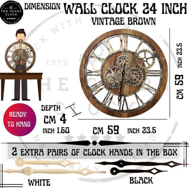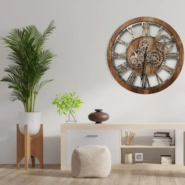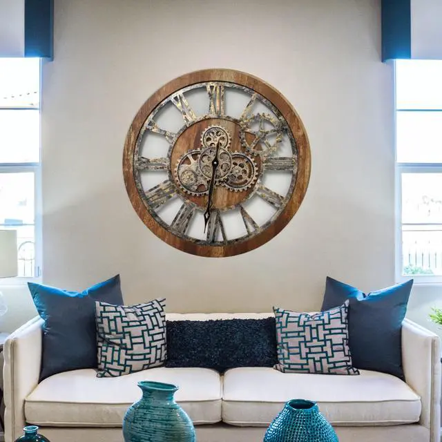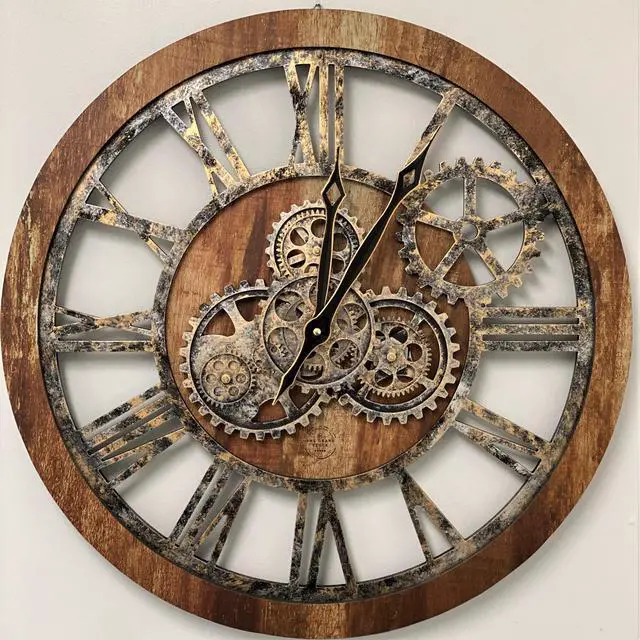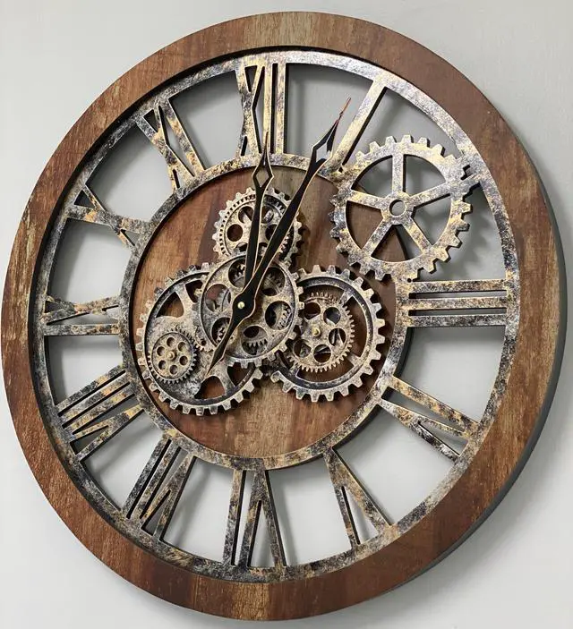 The Gears Clock 24'' Real Moving Gear Clock is a piece of art on your wall. MOVING GEAR | the Movement of the Gear makes the clock a living element in the environment in which it is placed. Great Decor in any room. QUALITY | Made using high-grade materials to ensure the clocks durability, the wood edge is left unmolded to leave a vintage aspect. PERFECT FOR ALL ROOMS | Improving life industrial vintage real gear clock is the perfect clock to dress up a wall in your kitchen, living room, bedroom, bathroom, family room, den, office.