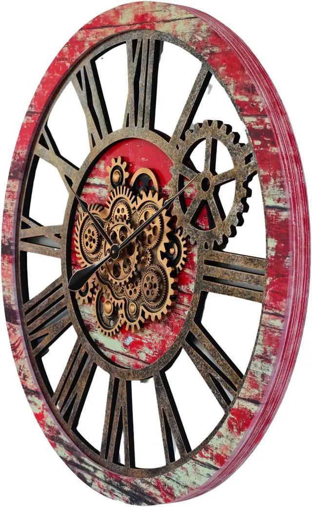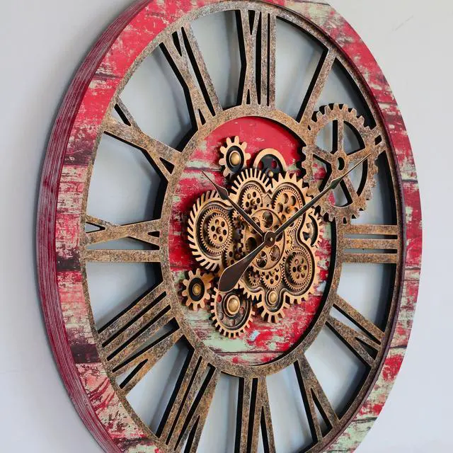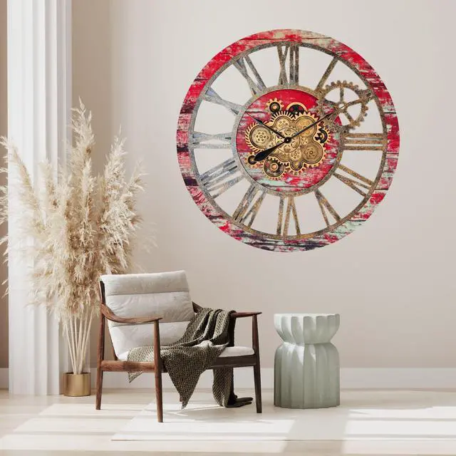 The Gears Clock 36'' Inch Real Moving Gear Wall Clock Vintage Industrial Oversized Rustic Farmhouse Red Lava