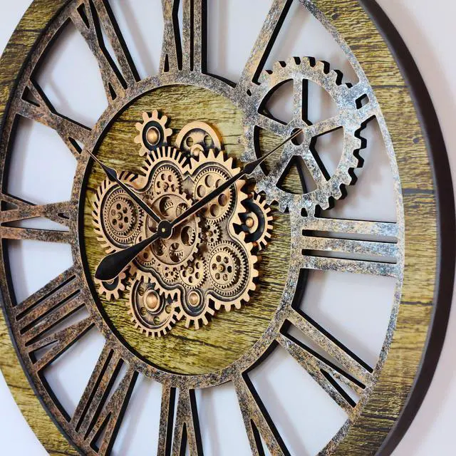 The Gears Clock 24'' Real Moving Gear Clock is a piece of art on your wall. MOVING GEAR | the Movement of the Gear makes the clock a living element in the environment in which it is placed. Great Decor in any room. QUALITY | Made using high-grade materials to ensure the clocks durability, the wood edge is left unmolded to leave a vintage aspect. PERFECT FOR ALL ROOMS | Improving life industrial vintage real gear clock is the perfect clock to dress up a wall in your kitchen, living room, bedroom, bathroom, family room, den, office.