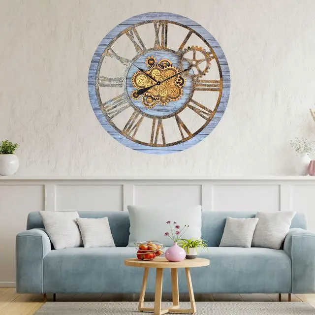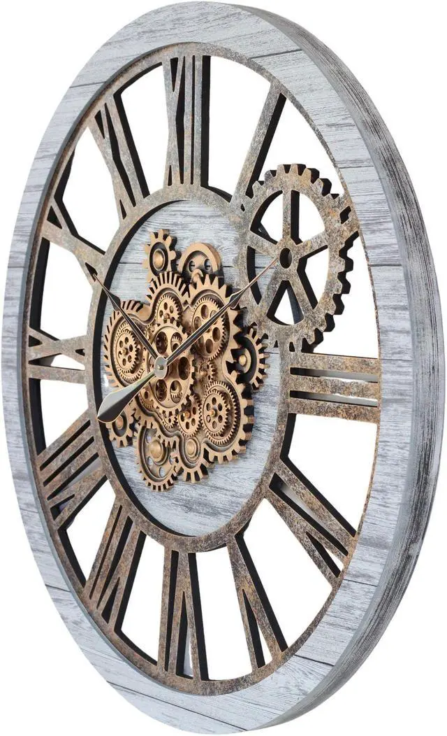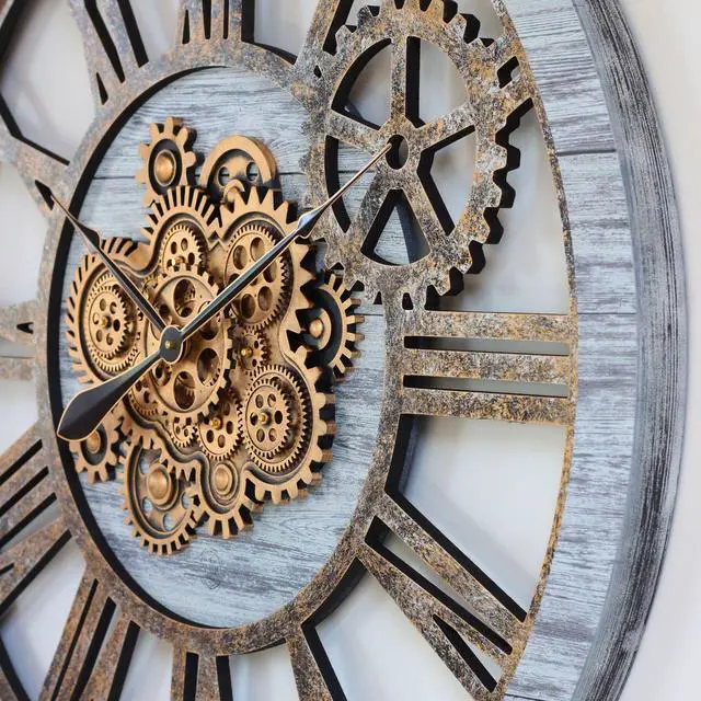 The Gears Clock 24'' Real Moving Gear Clock is a piece of art on your wall. MOVING GEAR | the Movement of the Gear makes the clock a living element in the environment in which it is placed. Great Decor in any room. QUALITY | Made using high-grade materials to ensure the clocks durability, the wood edge is left unmolded to leave a vintage aspect. PERFECT FOR ALL ROOMS | Improving life industrial vintage real gear clock is the perfect clock to dress up a wall in your kitchen, living room, bedroom, bathroom, family room, den, office.