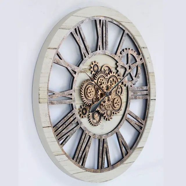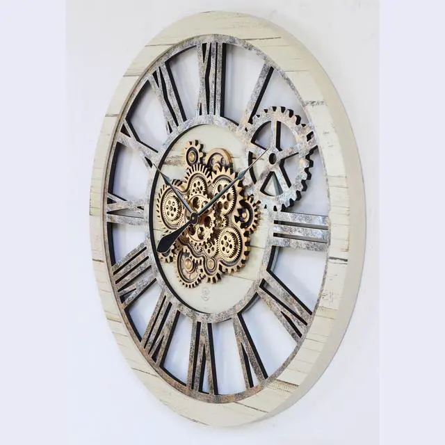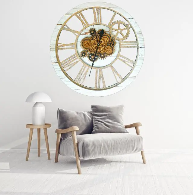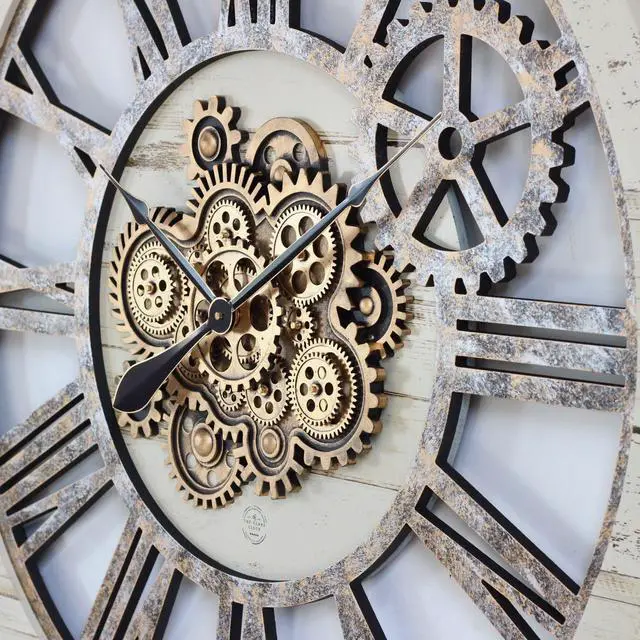 The Gears Clock 24'' Real Moving Gear Clock is a piece of art on your wall. MOVING GEAR | the Movement of the Gear makes the clock a living element in the environment in which it is placed. Great Decor in any room. QUALITY | Made using high-grade materials to ensure the clocks durability, the wood edge is left unmolded to leave a vintage aspect. PERFECT FOR ALL ROOMS | Improving life industrial vintage real gear clock is the perfect clock to dress up a wall in your kitchen, living room, bedroom, bathroom, family room, den, office.