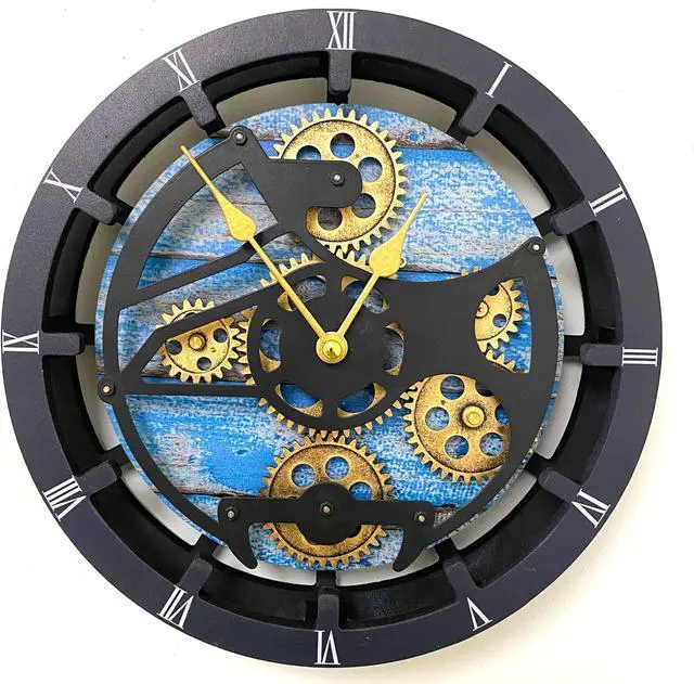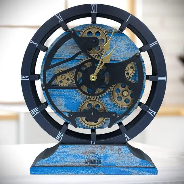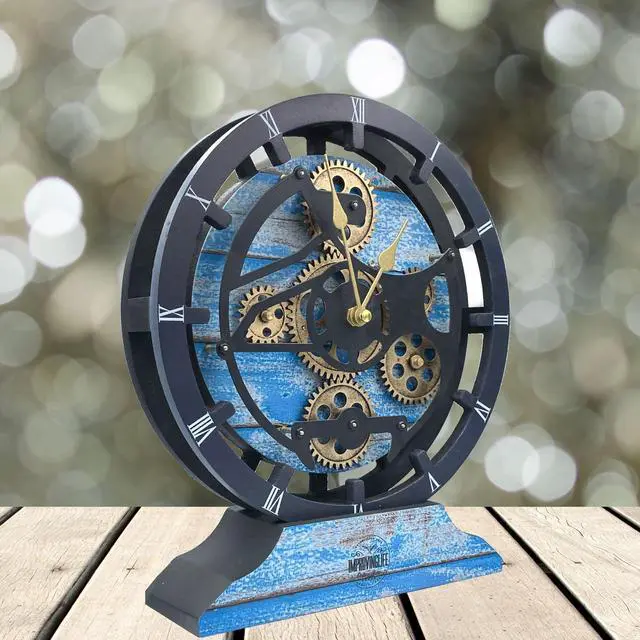 The Gears Clock Desk Clock 10 Inches With Real Moving Gear Convertible Into Wall Clock Ocean Blue