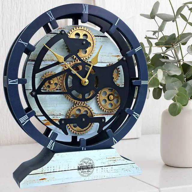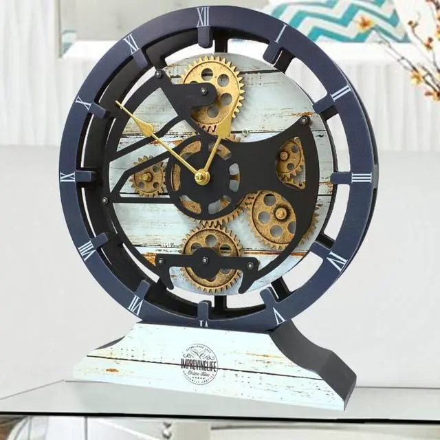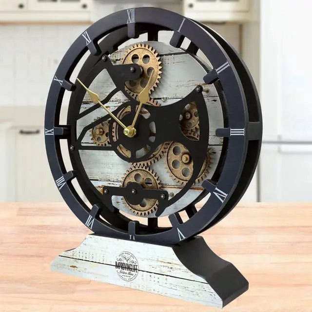The Gears Clock Desk Clock 10 Inches With Real Moving Gear Convertible Into Wall Clock Desert Beige