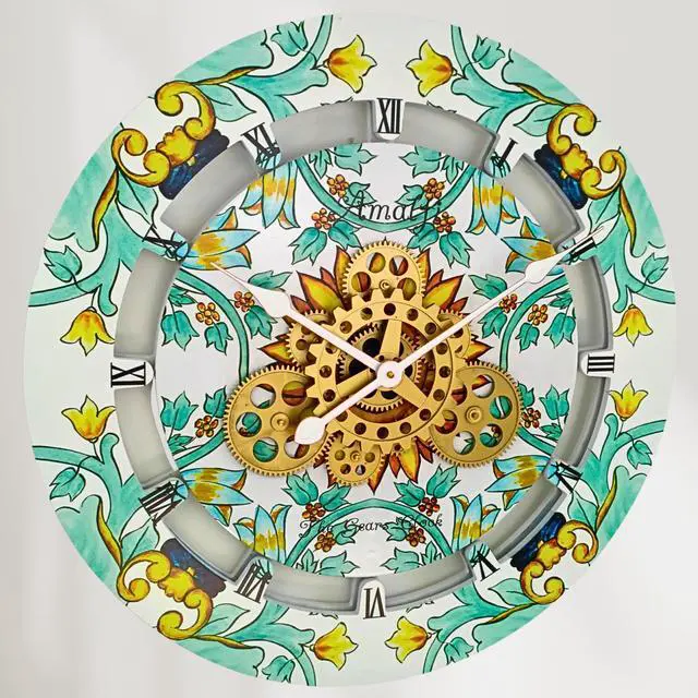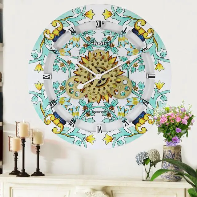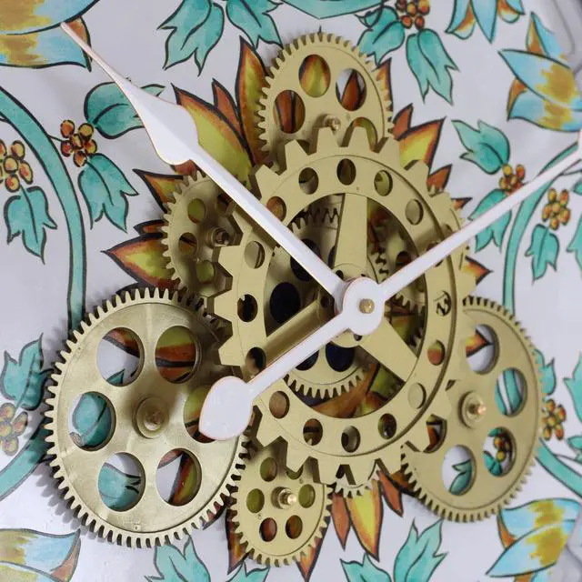 The Gears Clock 24'' Real Moving Gear Clock is a piece of art on your wall. MOVING GEAR | the Movement of the Gear makes the clock a living element in the environment in which it is placed. Great Decor in any room. QUALITY | Made using high-grade materials to ensure the clocks durability, PERFECT FOR ALL ROOMS | The Gears clock is the perfect clock to dress up a wall in your kitchen, living room, bedroom, bathroom, family room, den, office, anywhere. Requires three AA battery, and is easily hung on any wall.