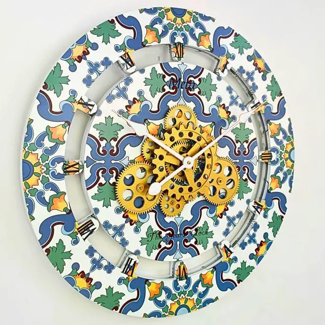The Gears Clock 24'' Real Moving Gear Clock is a piece of art on your wall. MOVING GEAR | the Movement of the Gear makes the clock a living element in the environment in which it is placed. Great Decor in any room. QUALITY | Made using high-grade materials to ensure the clocks durability, PERFECT FOR ALL ROOMS | The Gears clock is the perfect clock to dress up a wall in your kitchen, living room, bedroom, bathroom, family room, den, office, anywhere. Requires three AA battery, and is easily hung on any wall.