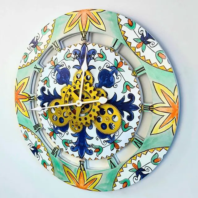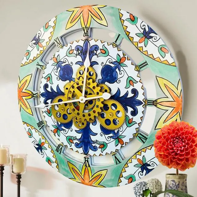 The Gears Clock 24'' Real Moving Gear Clock is a piece of art on your wall. MOVING GEAR | the Movement of the Gear makes the clock a living element in the environment in which it is placed. Great Decor in any room. QUALITY | Made using high-grade materials to ensure the clocks durability, PERFECT FOR ALL ROOMS | The Gears clock is the perfect clock to dress up a wall in your kitchen, living room, bedroom, bathroom, family room, den, office, anywhere. Requires three AA battery, and is easily hung on any wall.