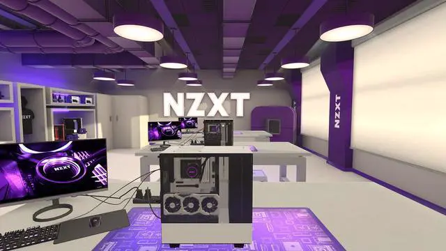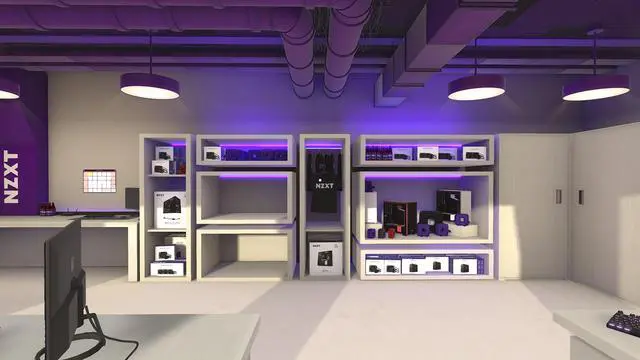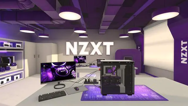 A brand new workshop for PC Building simulator created with NZXT's design team. A crisp, modern space, featuring an all-new layout decorated with NZXT products and swag.