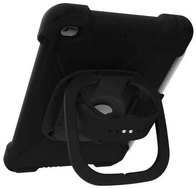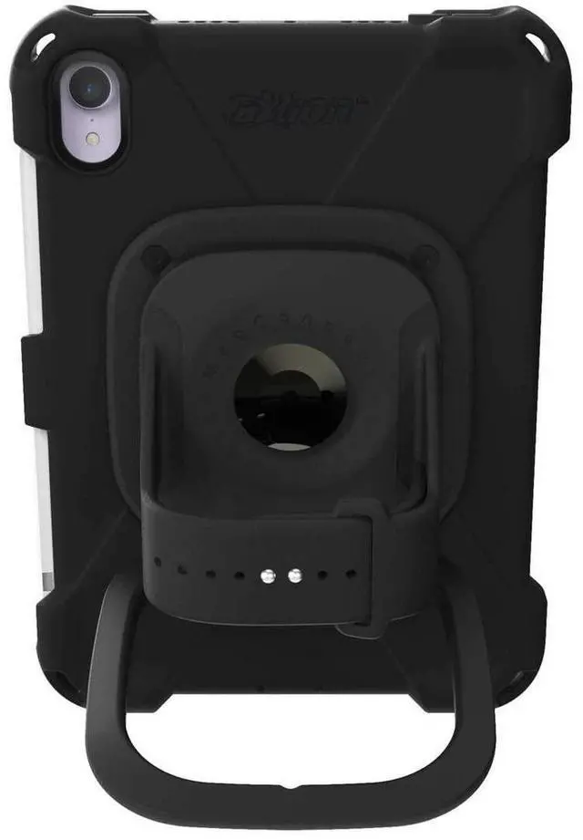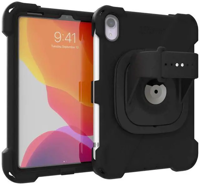 aXtion Bold MP for iPad mini 6th generation is a military grade certified drop proof case that boasts MIL-STD-810H certification. Other protective features include: water-resistance to protect against accidental splashes of liquid; screen and camera lens protectors to prevent scratches to the device; molded-in button and port covers to reduce exposure to foreign debris; and reinforced corners to help absorb shock if dropped. In addition to these protective features, the case features an MP+ module which includes: a rotating/adjustable hand strap that is made of silicone for easy cleaning; and a multi-angle kickstand that doubles as a carrying handle.