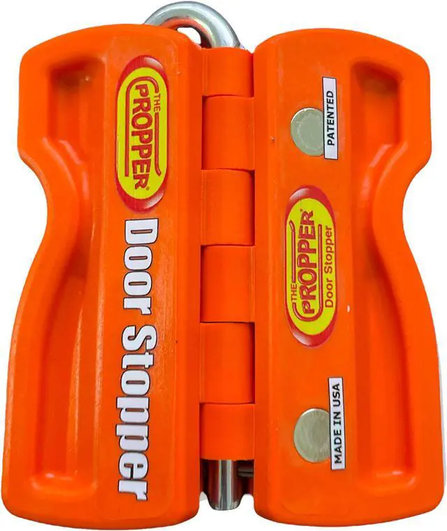 The Propper Door Holder proves useful in any Industry or Occupation where it is necessary to temporarily hold open a door. With its fold-up design you will be able to easily carry The Propper Door Holder in your pocket in your toolbox or on your cleaning cart. When ready to use simply unfold The Propper Door Holder open the door and slip The Propper Door Holder over any hinge the top the middle the bottom it doesnt matter. Safe secure design that will work on any hinge. Folds up for pocket or purse. No need to bend-over ever.