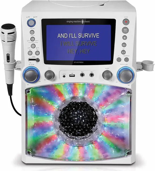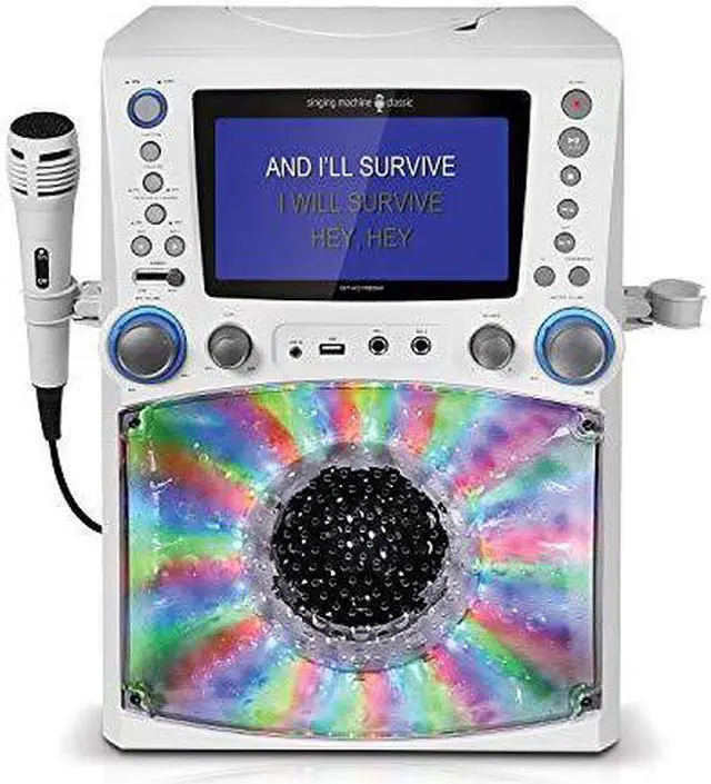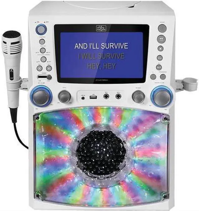 Make your next party a legendary singing sensation with the Singing Machine Karaoke System. Not only does it play music CDs and karaoke CD+Graphics, built-in disco lights add a fun-filled retro touch and can even be customized.