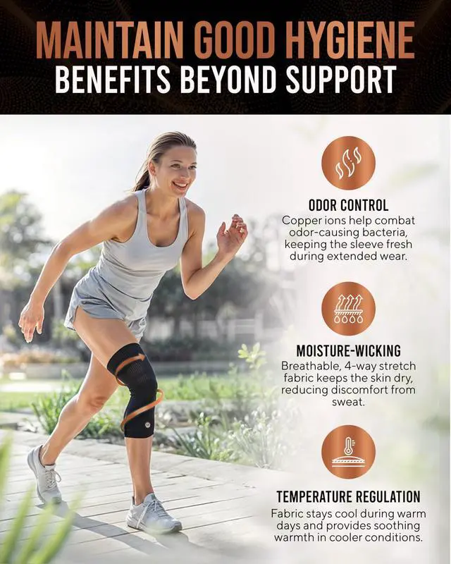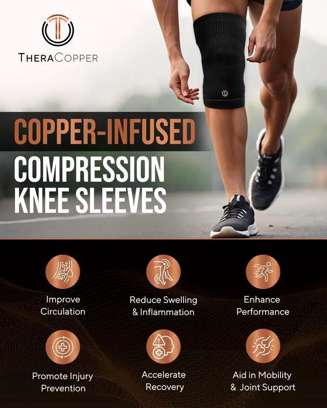 TheraCopper knee sleeves combine high copper content and compression to power your movement, ease discomfort, and support recovery.