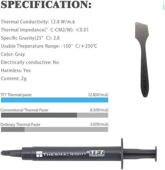 High performance: Excellent performance comes from its first-class data, thermal conductivity up to 12.8w/m.k, it has a good record of high cooling performance.