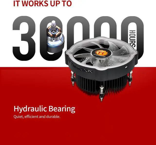 This RGB CPU Air Cooler is designed for Intel CPU consuming power below 65W. It adopts hydraulic bearing to make it durable and work more quietly and with aluminium fin, it owns great ability to dissipate heat.