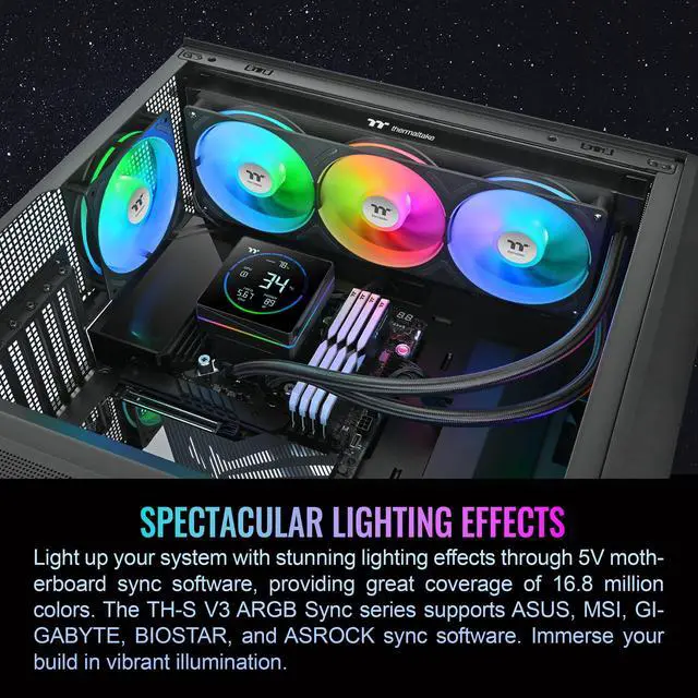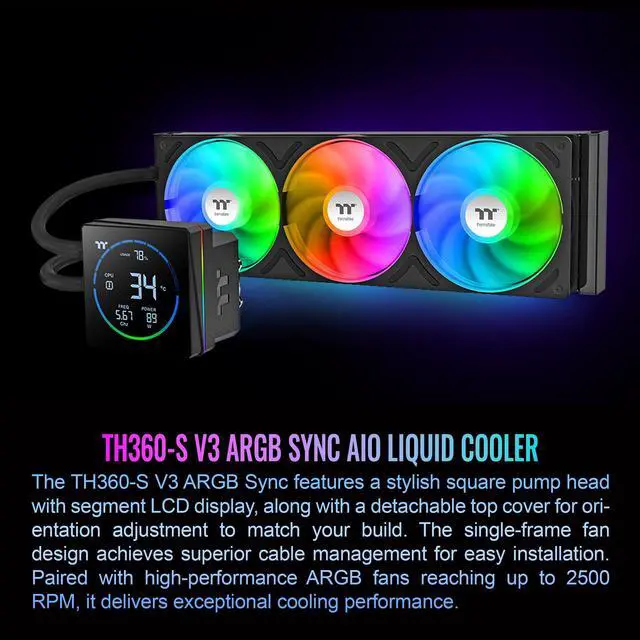 Adding on to the TH Series of coolers the V3 line up adds new features like rotatable pump heads for optimal display, single frame fans that not only perform but also are easy to maintain, and to top it off a 3.95" Segment Code LCD display.