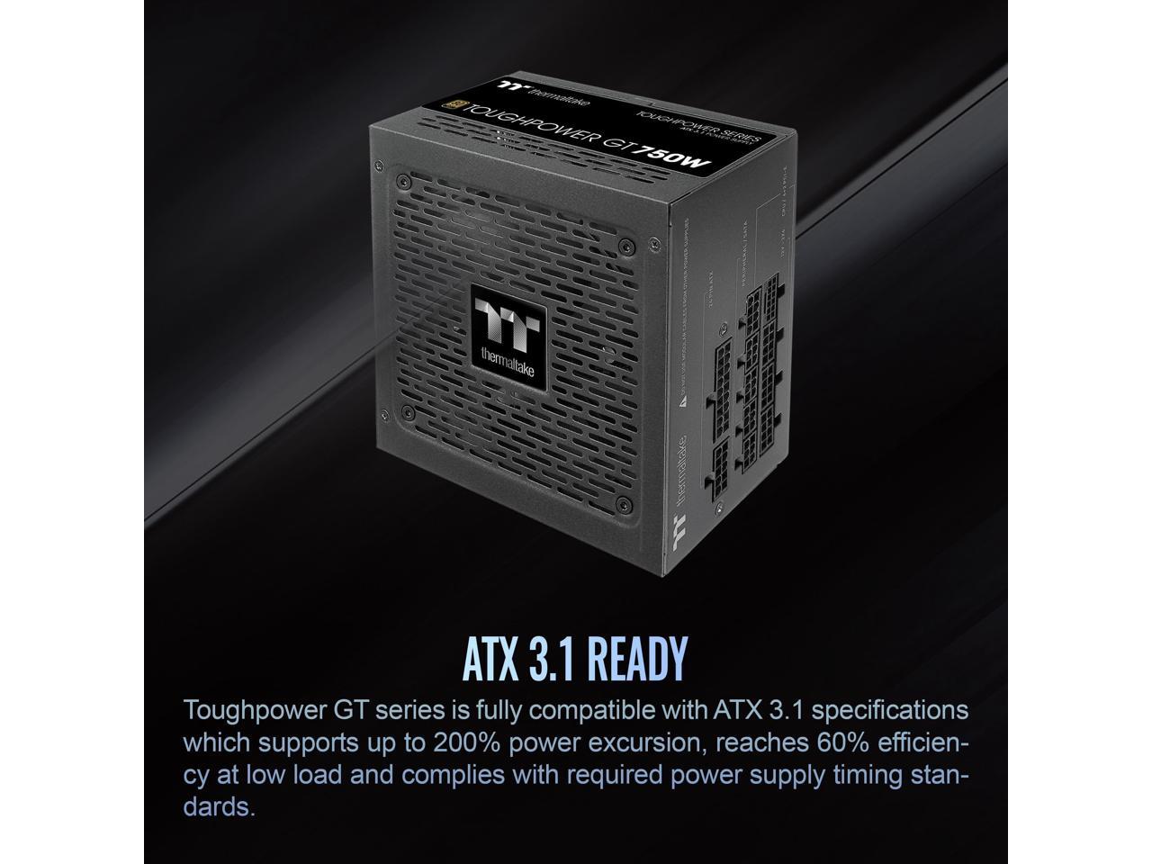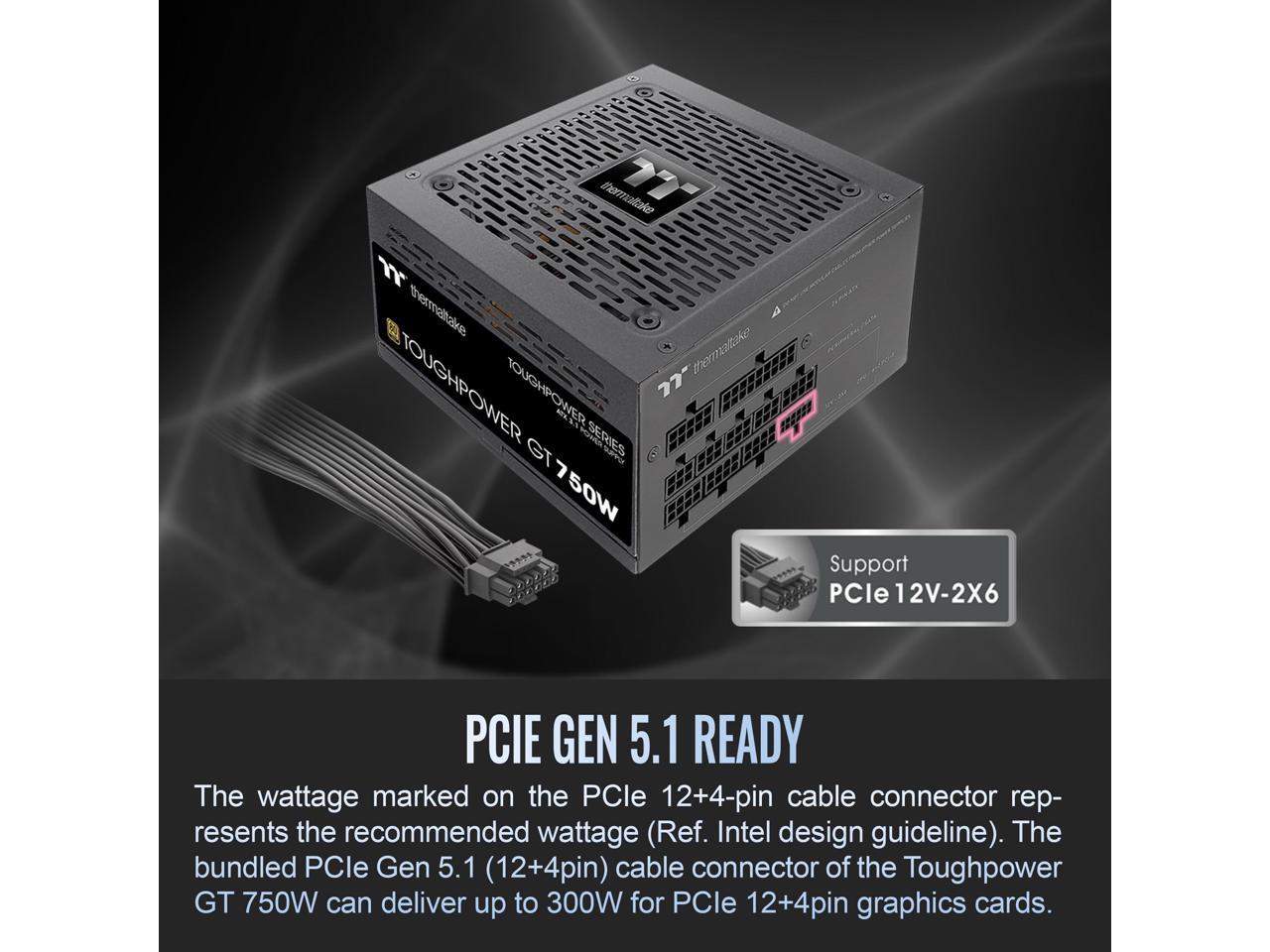Thermaltake Toughpower GT 750W ATX 3.1 Standard Power Supply; 80 Plus Gold Efficiency; Smart Zero Fan; Native 300W PCIe 5.1 Connector; PS-TPT-0750FNFAGU-3