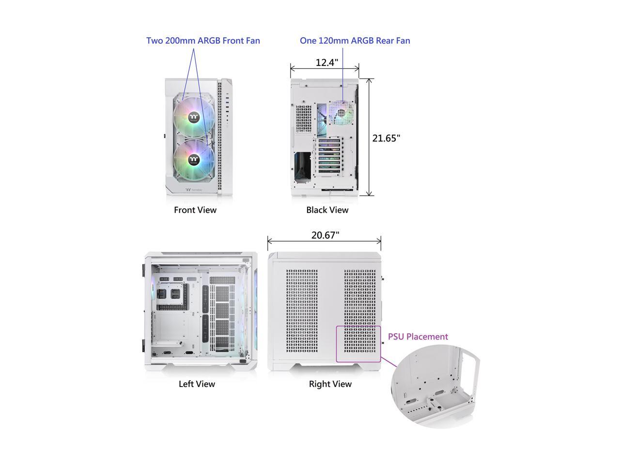 Thermaltake View 51 Snow Motherboard Sync ARGB E-ATX Full Tower Gaming Computer Case with 2 200mm ARGB 5V Motherboard Sync RGB Fans + 140mm Black Rear Fan Pre-Installed CA-1Q6-00M6WN-00