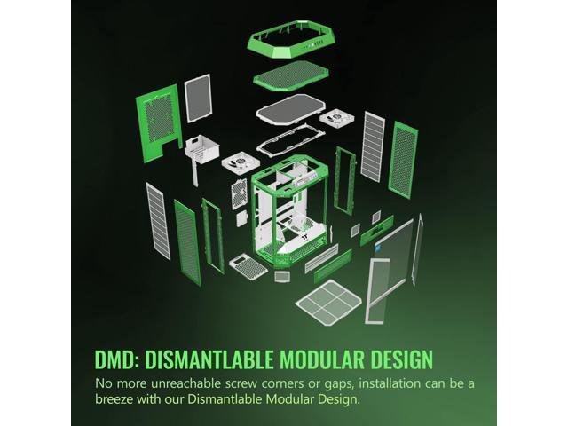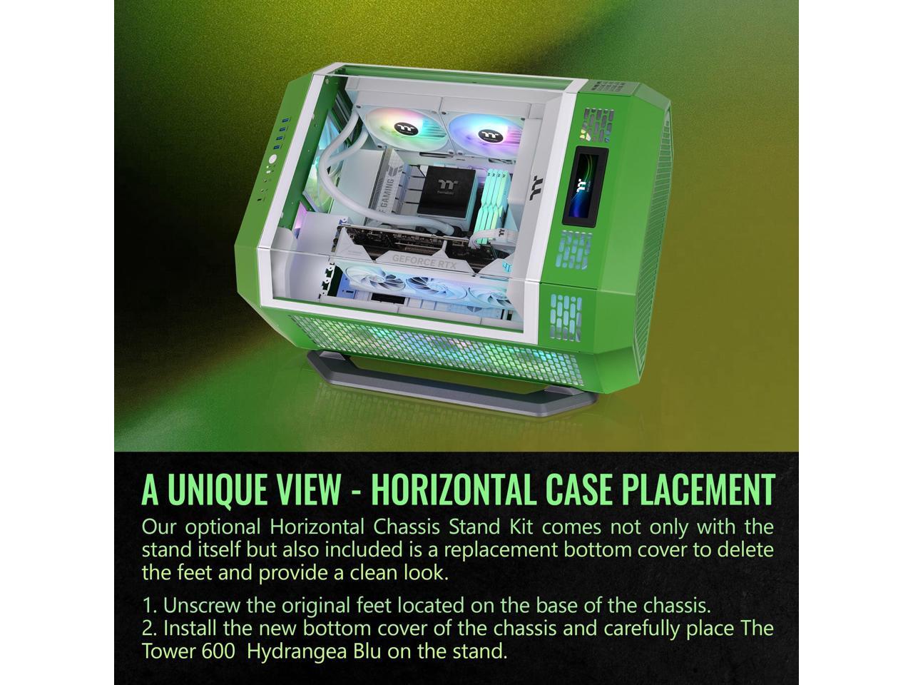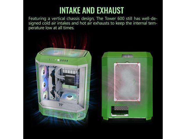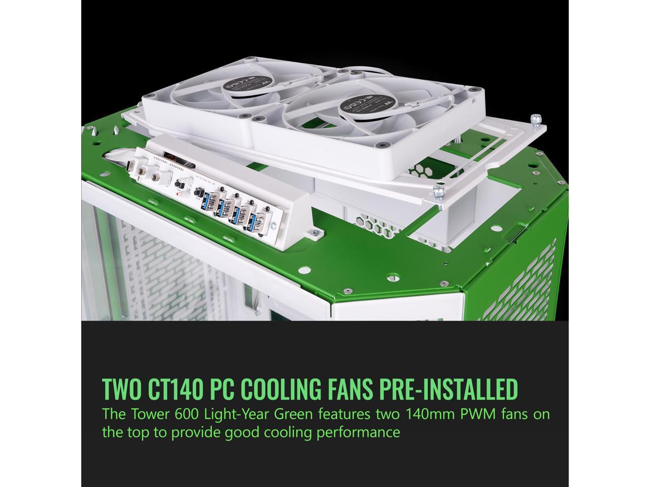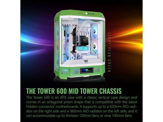 Thermaltake Tower 600 Mid Tower; 2x140mm CT Fans Included; 420mm Radiator Support; 400mm GPU Clearance; Hidden Connector Support; Rotatable PCIe Slots; Light-Year Green; CA-1Z1-00MOWN-00