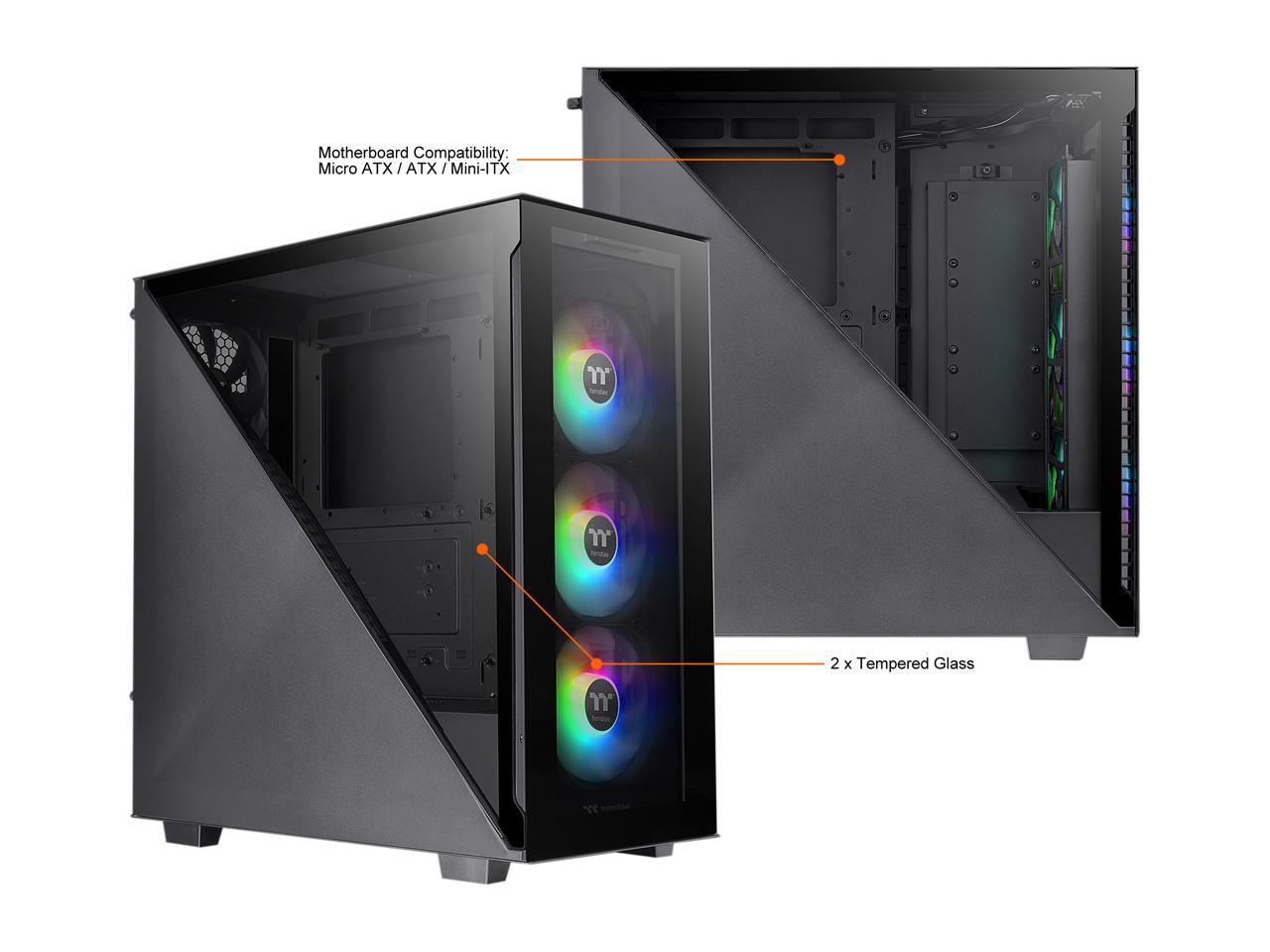 Thermaltake Divider 300 ARGB Triangular Tempered Glass Type-C (USB 3.1 Gen 2) Water Cooling Ready ATX Mid Tower Computer Case with 3 x 120mm ARGB Rear Fan Pre-Installed, CA-1S2-00M1WN-01
