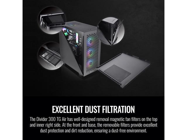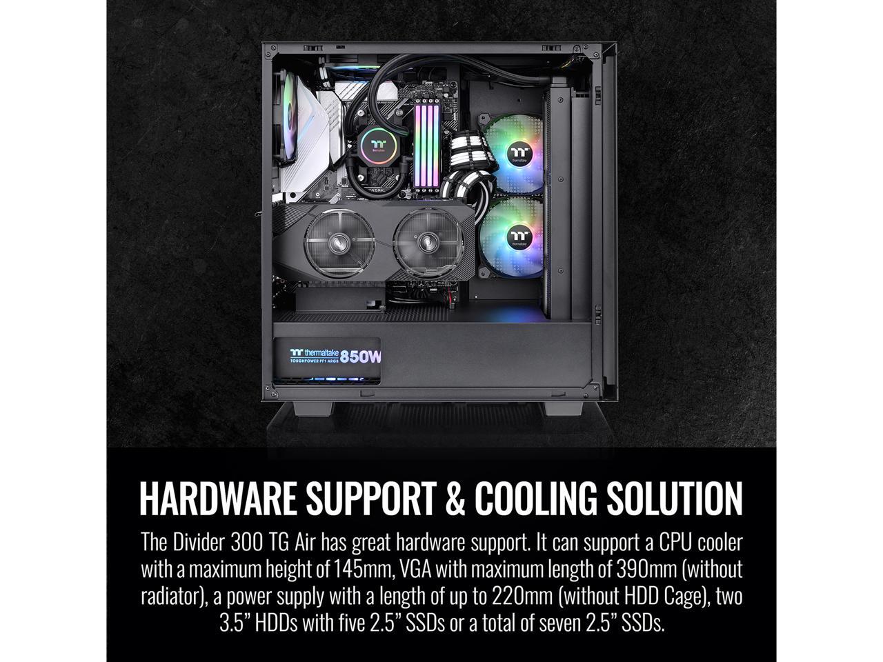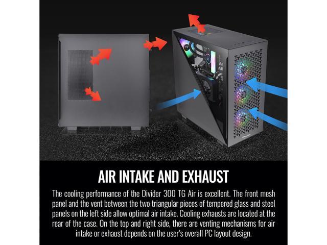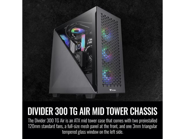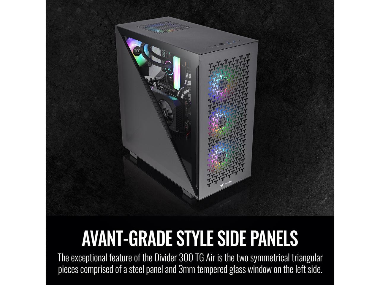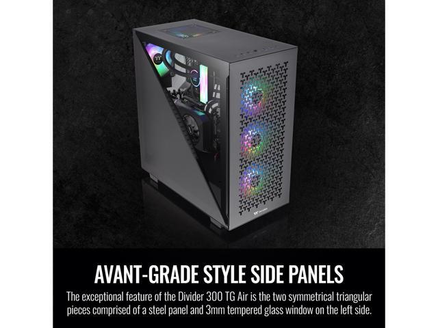 Thermaltake Divider 300 TG Air Front Mesh Black Edition Triangular Tempered Glass Side Panel ATX Mid Tower Computer Case with 2 Pre-installed 120mm Fan CA-1S2-00M1WN-02