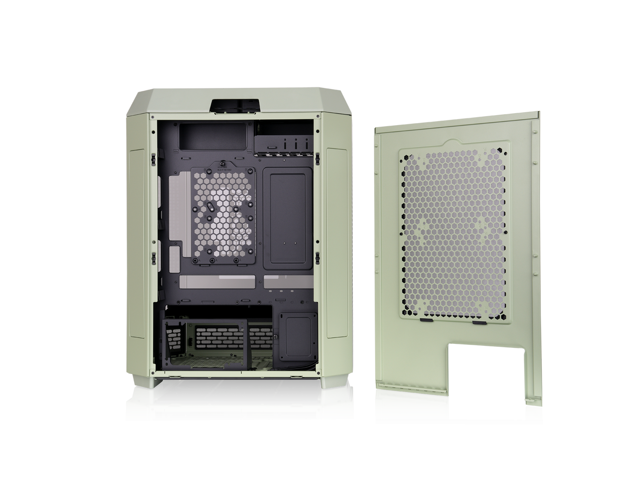 Thermaltake Tower 600 Matcha Green Mid-Tower ATX Case; 3 Tempered Glass Panels; Hidden-Connector Motherboard Support; Rotational PCI-e Slots; CA-1Z1-00MEWN-00