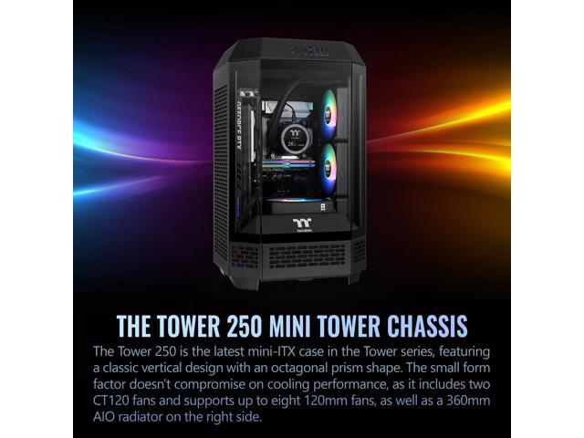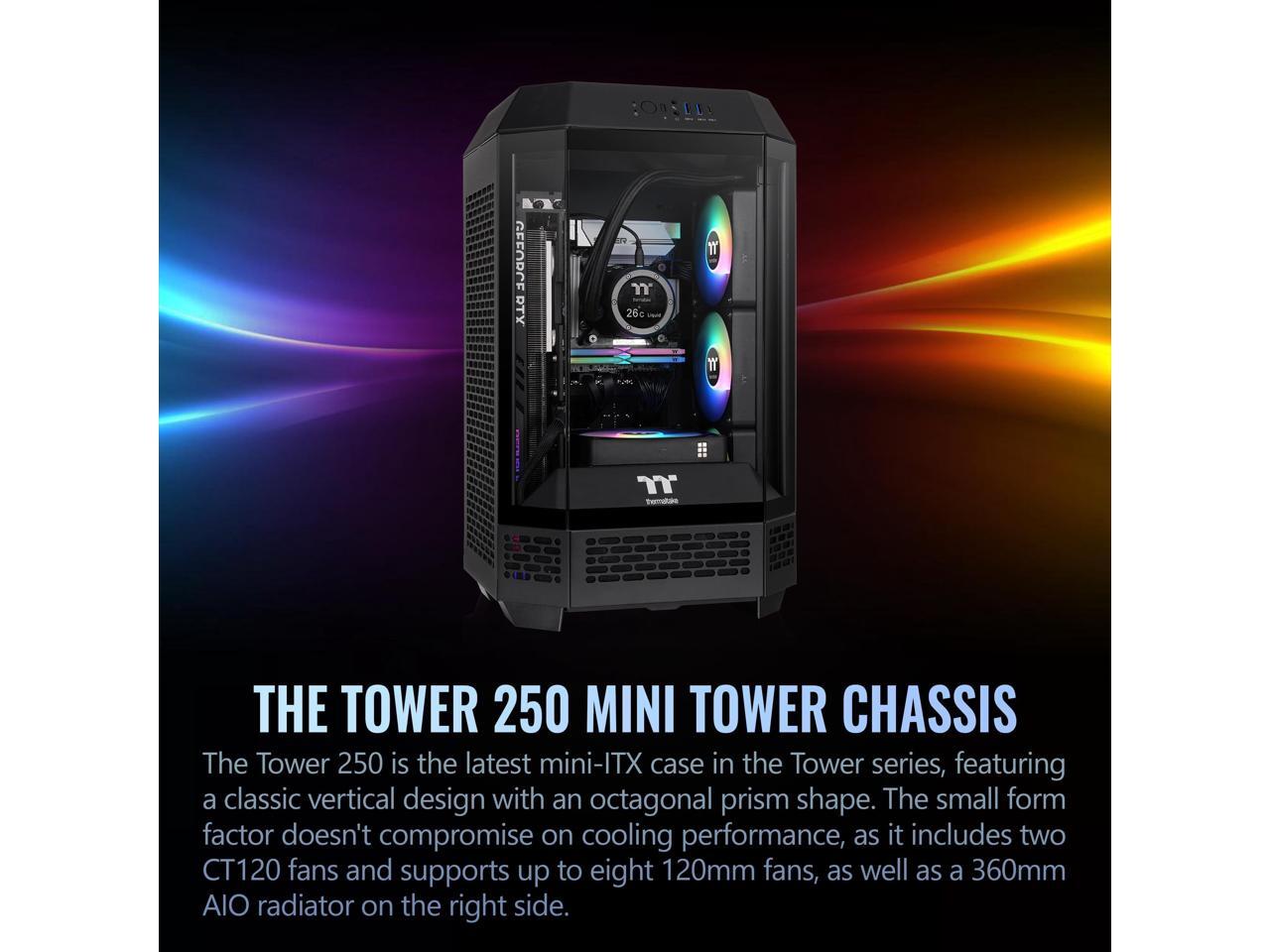 Thermaltake Tower 250 Black Mini-ITX Mini Tower 2x120mm CT Fans Included 360mm Radiator Support 360mm GPU Clearance Dual Chamber CA-1Z9-00S1WN-00