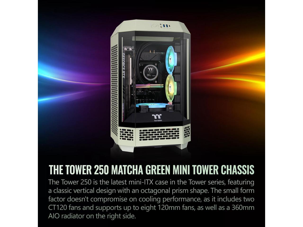 Thermaltake Tower 250 Matcha Green Mini-ITX Mini Tower 2x120mm CT Fans Included, 360mm Radiator Support 360mm GPU Clearance Dual Chamber CA-1Z9-00SEWN-00