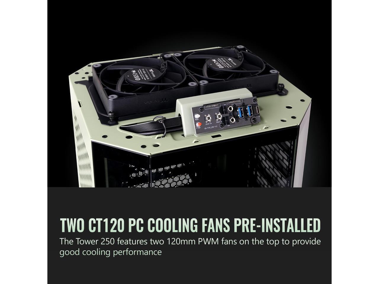 - Keep it Cool With 2x 120mm pre-installed exhaust fan on the top, the Tower 250 can accommodate up to 8x 120mm fans.