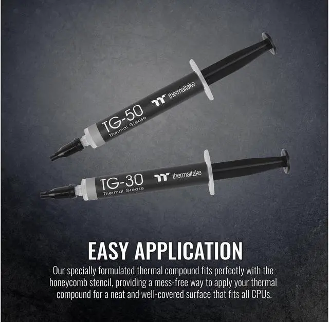 Thermaltake’s specially formulated thermal compound fits perfectly with the honeycomb stencil, which provides an easier way to apply your thermal compound for a neat and well-covered surface that fits all CPUs.