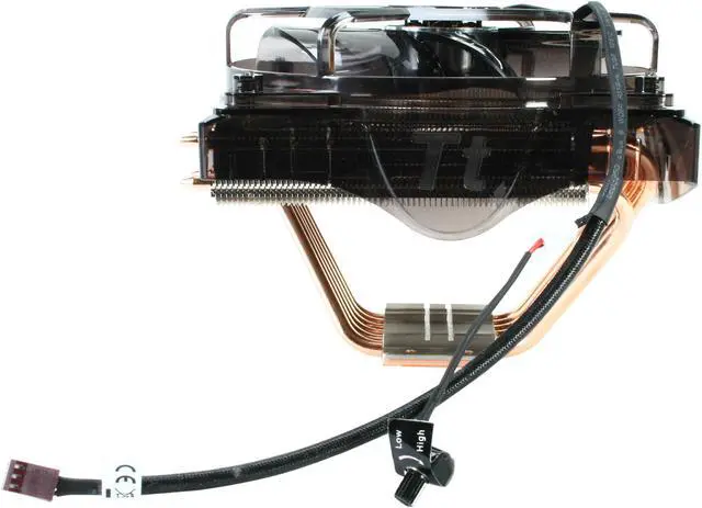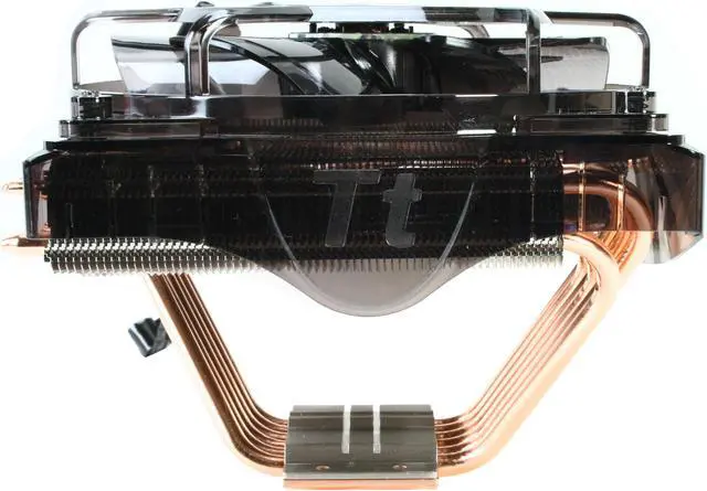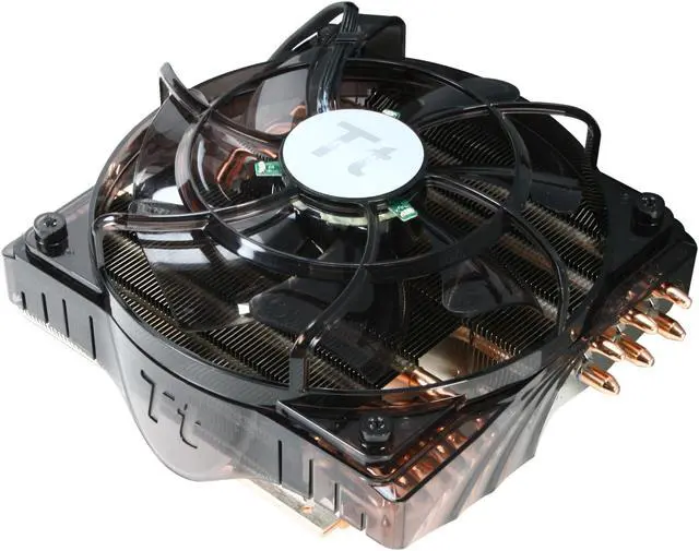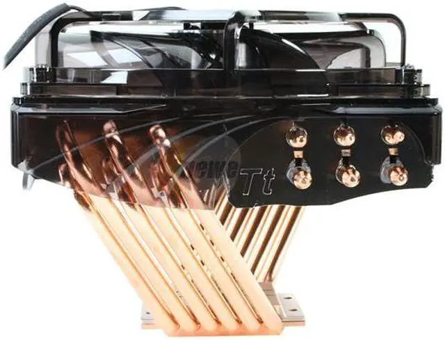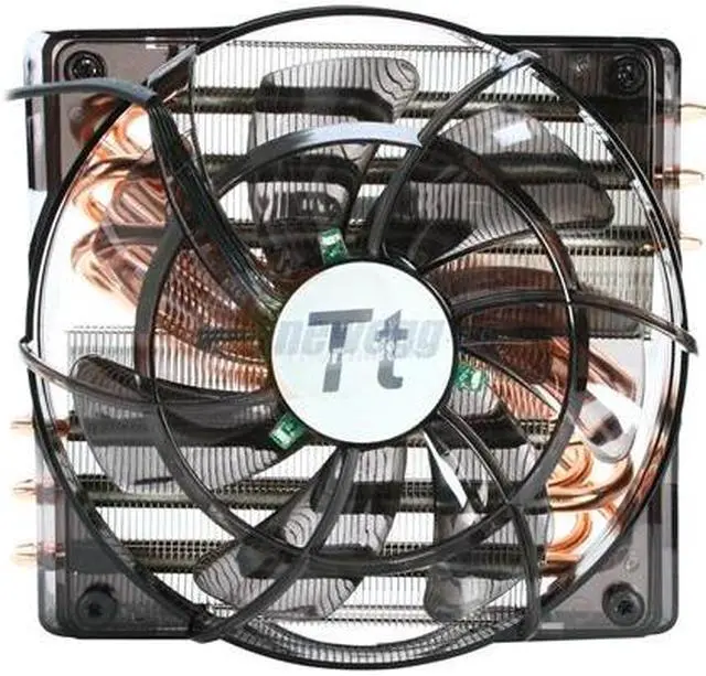 Step up from your stock cooling fan and heatsink to the Thermaltake CL-P0456 CPU cooler. Supporting both Intel (LGA 775) and AMD (socket AM3/AM2/AM2+/939/754, supports AMD latest 6-core processors) platforms, it will take care of your high-end processors. It has twelve large exposed 6mm pure copper heatpipes at its copper base which directly contact the CPU for highly efficient thermal conduction, plus the whopping, completely silent 140mm fan with blue LED directs huge air flow to cool down the CPU as well as the surrounding. VR Fan function allows you to adjust the fan speed for your need. It doesn't matter how much heat your CPU generates, you'll have trouble preventing it from getting frosty!