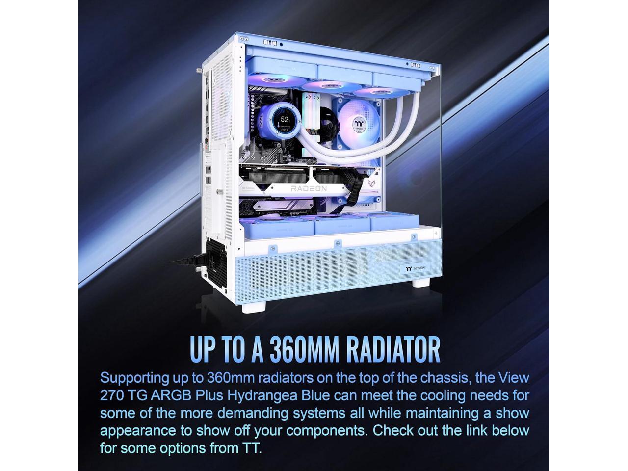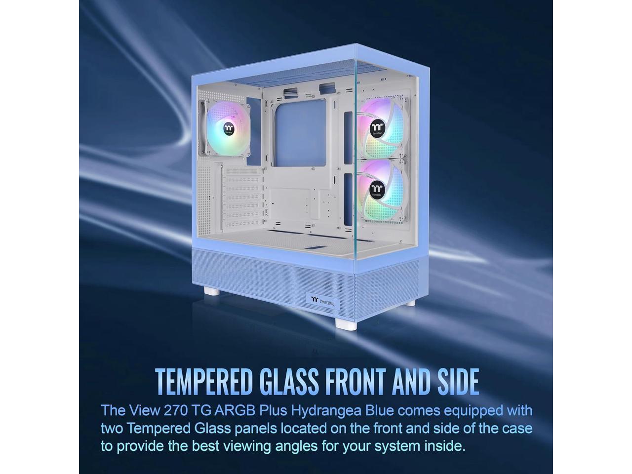 Thermaltake View 270 Plus TG ARGB Hydrangea Blue Mid Tower E-ATX Case 3x120mm ARGB Fans Included; Support Up to 360mm Radiator Front & Side Dual Tempered Glass Panel CA-1Y7-00MFWN-01