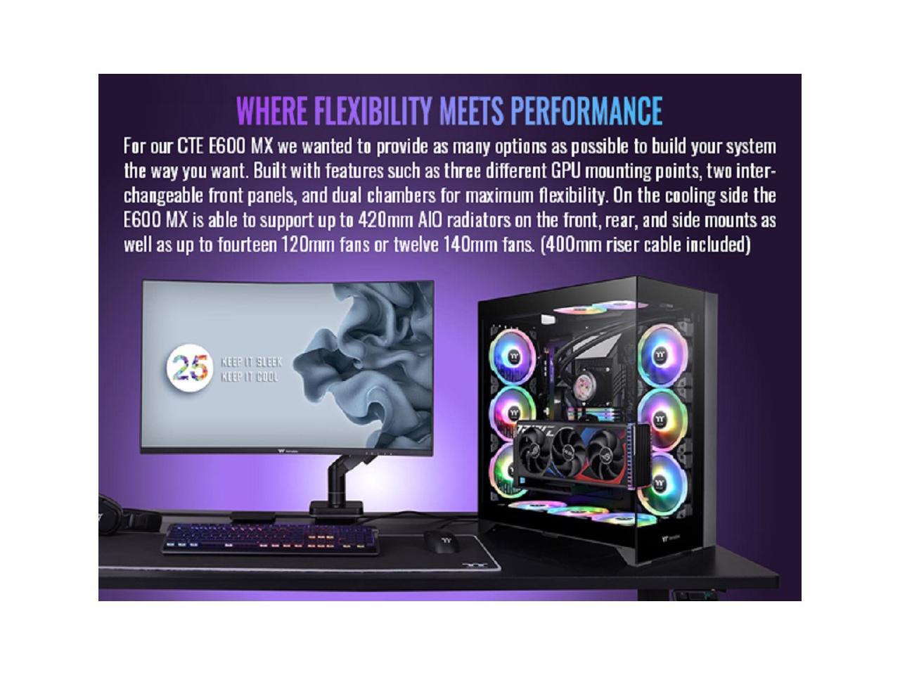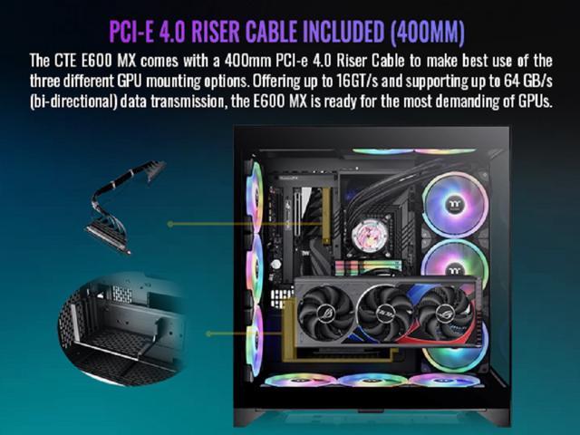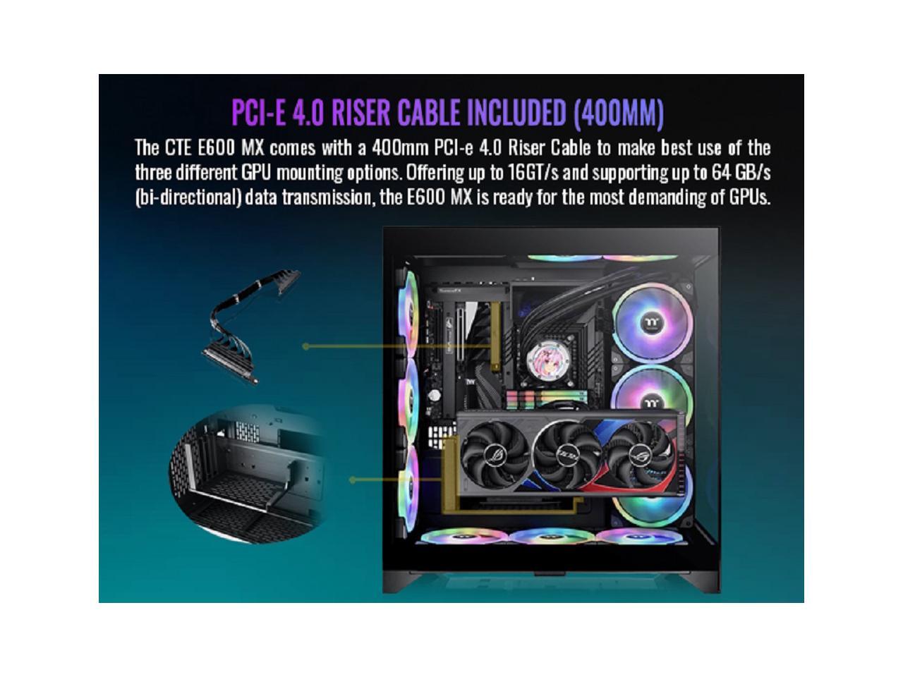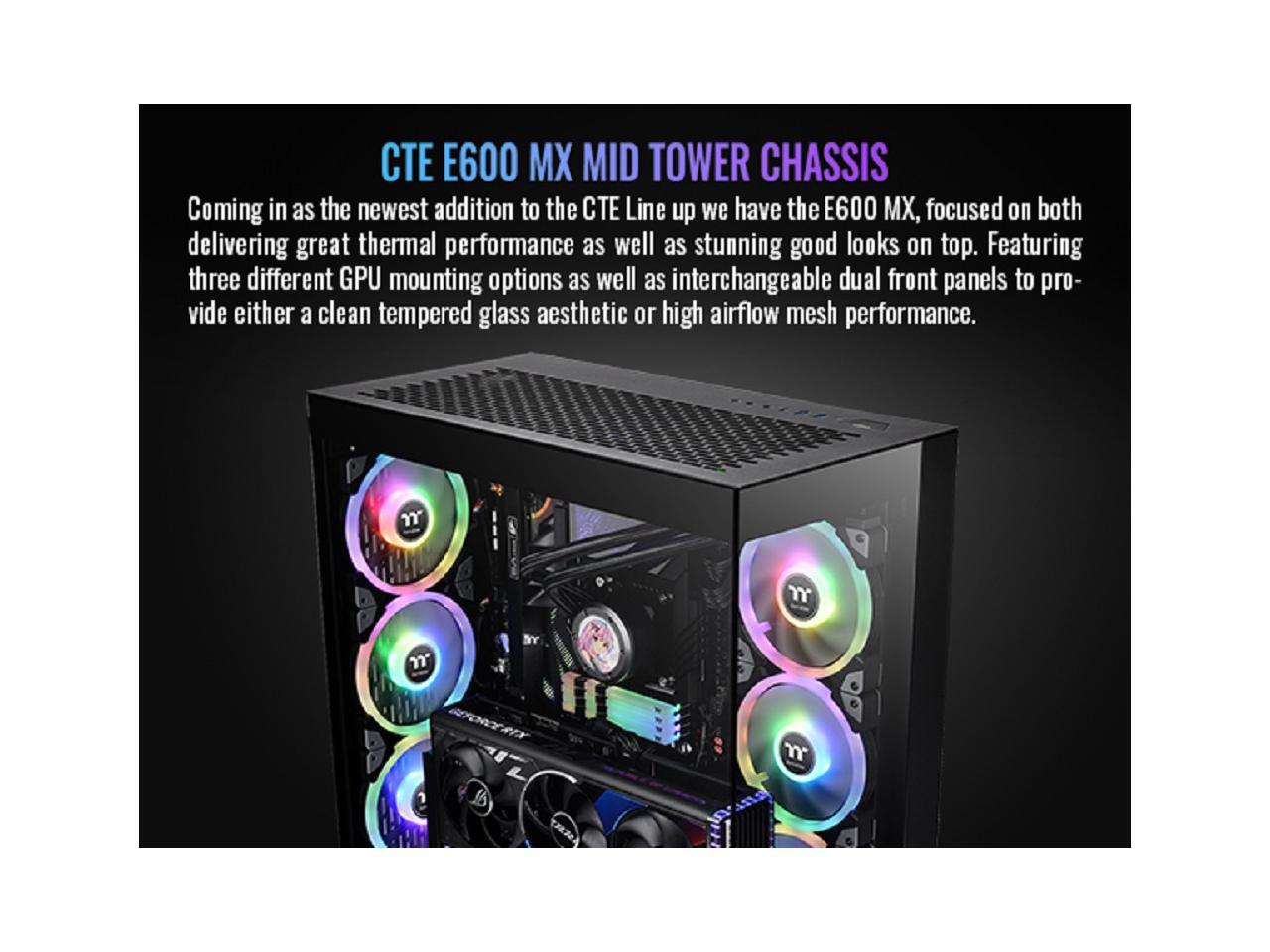 Thermaltake CTE E600 MX Black Mid Tower E-ATX Case with Centralized Thermal Efficiency Design; 3Way Floating GPU Mounting Bracket/ 400mm PCIe4 Riser Cable are all Included; CA-1Y3-00M1WN-00