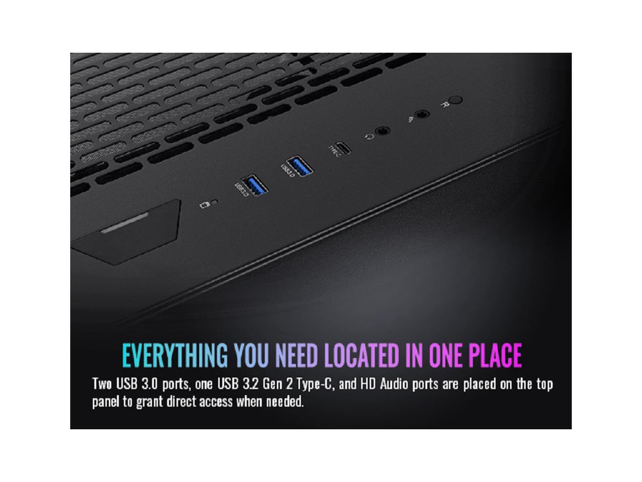 - USB 3.0 x 2, Type C x 1, HD Audio x 1 Front Ports