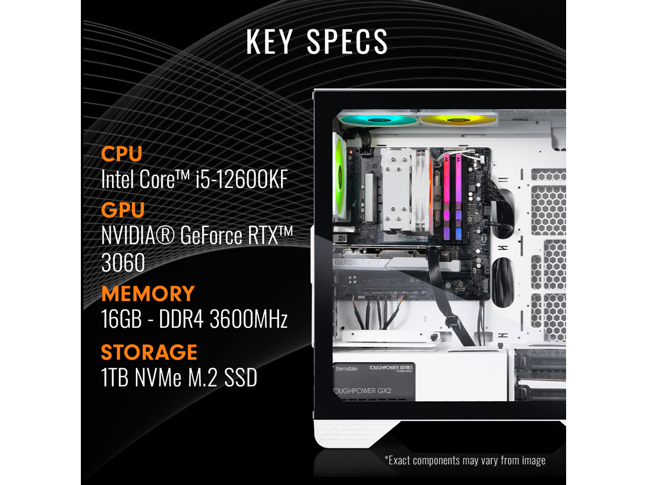Thermaltake LCGS Glacier i1260S Gaming Desktop (Intel Core i5-12600KF, ToughRam DDR4 3600Mhz 16GB RGB Memory, NVIDIA GeForce RTX 3060, 1TB NVMe M.2, Wifi, Win11 Home) S3WT-B760-360-LCS