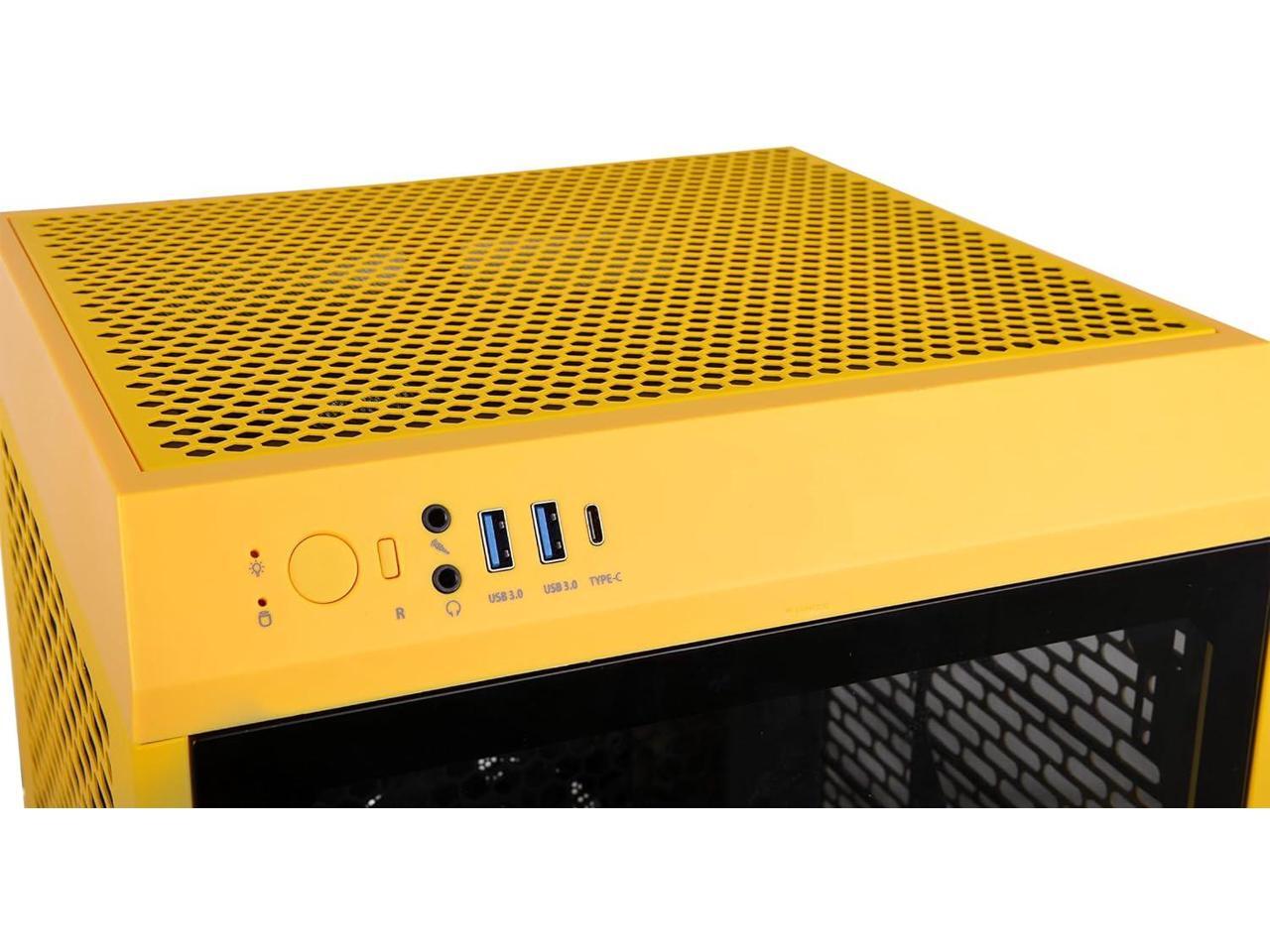 Thermaltake Tower 200 Mini-ITX Computer Case; 2x140mm Pre-Installed CT140 Fans; Supports GPU Length Up to 380mm; CA-1X9-00S4WN-00; Bumblebee; 3 Year Warranty