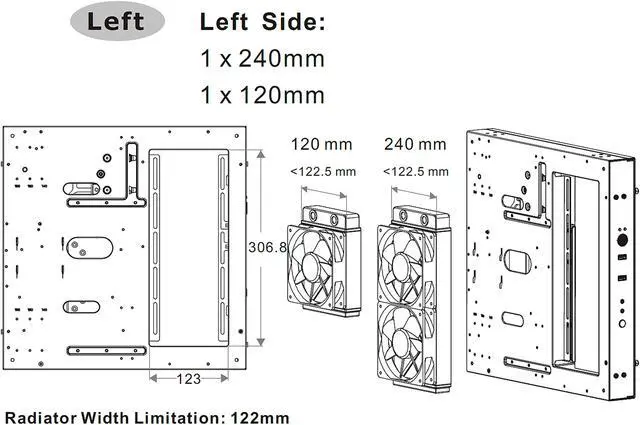 | Fan Support | Left Side: 2 x 120mm |