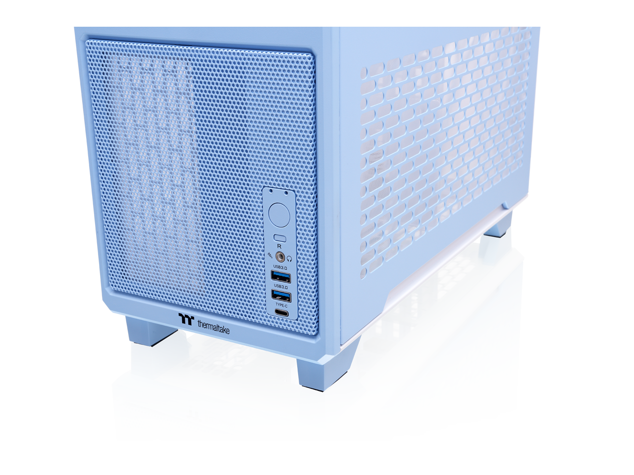 Thermaltake TR100 SFF Chassis; mITX Support 18.9 Liters PCIe 4.0 Riser Cable Included 360mm GPU Clearance 280mm Radiator Support Removable PCIe Bracket, Hydrangea Blue, CA-11A-00SFNN-00