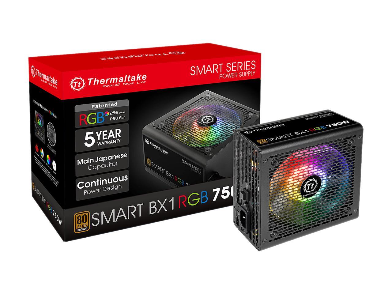 Built to deliver 80 PLUS Bronze efficiency, Smart BX1 RGB series is available in 550W, 650W, and 750W models. The preinstalled 10 LED RGB fan provides excellent airflow, and also 3 lighting modes, 7 color options, LED Off, and a built-in memory function, which saves the colors applied and insure the same color selection every time you boot your PC. Comes with premium components, stable continuous power output at 40?, and ample 5-year warranty, its near silent operation, trouble free installation and reliable performance have made itself satisfy the market where value-oriented users are looking for a power supply with advanced features and aesthetic appeal.