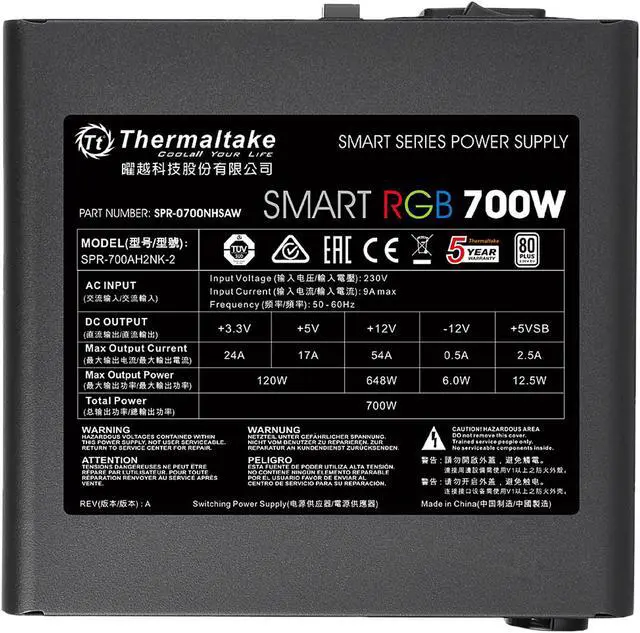 Style:RGB Fan | Size:700W Thermaltake Smart RGB 700W 80+ 256-Color RGB Fan ATX