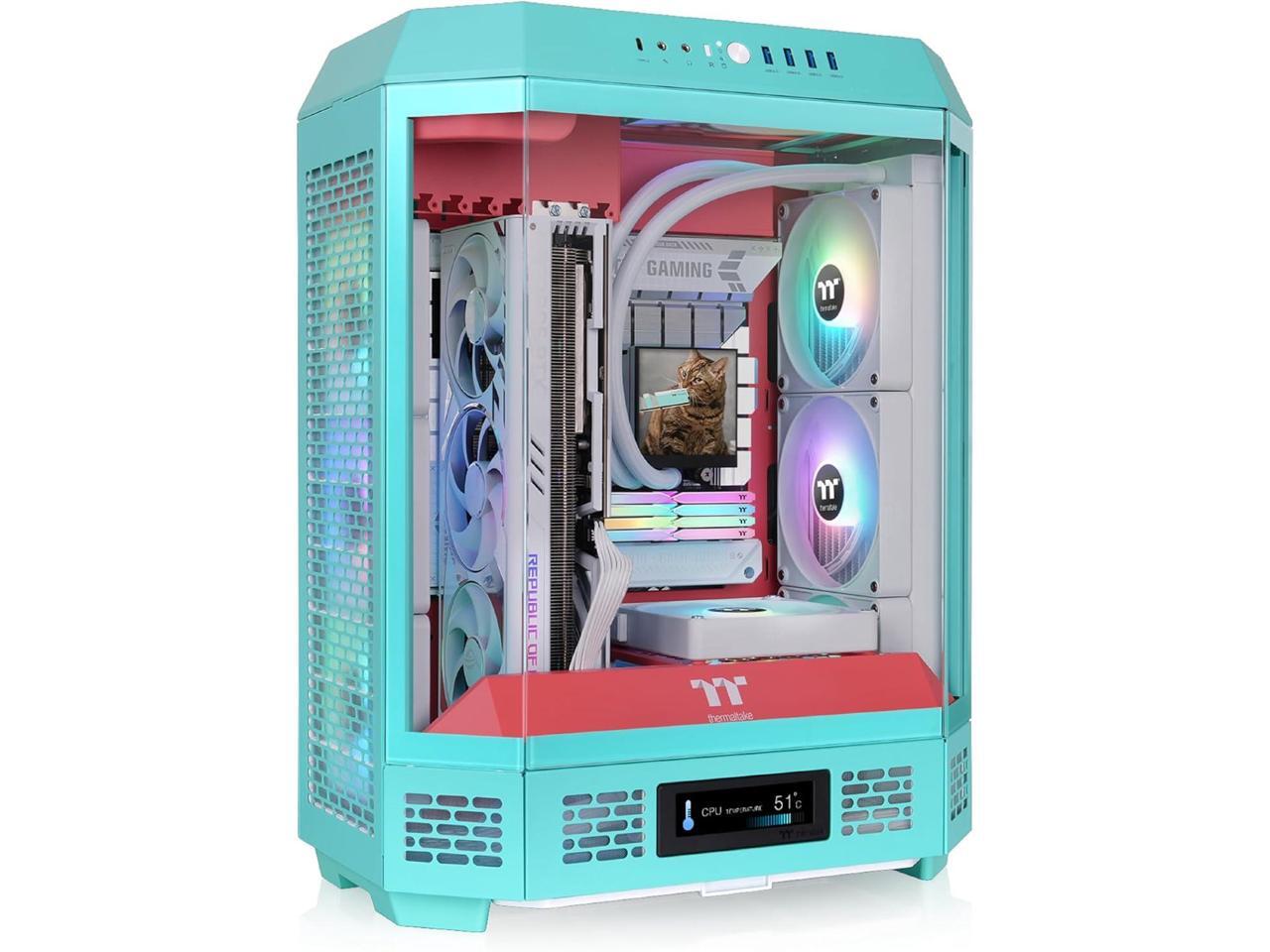 Thermaltake Tower 600 Mid Tower; 2x140mm CT Fans Included; 420mm Radiator Support; 400mm GPU Clearance; Hidden Connector Support; Rotatable PCIe Slots; Mint Strawberry; CA-1Z1-00MLWN-00