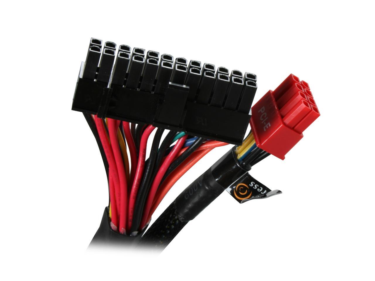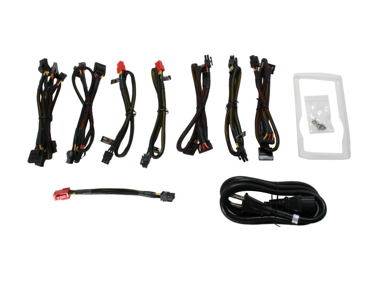 Kept ultra-cool with a large 140mm fan, this heavy-duty power supply remains virtually silent and supremely cool even at peak loads. Compatible with the ATX-sized cases, this advanced PSU offered completely sleeved and modularized cables for more legroom for system-cooling modifications. With one Main connector (20 + 4 pin), one 12V (P4), one 12V (8pin), one Floppy, seven peripheral, six SATA, and two PCI-E connectors, you have more than enough connections for all your components. This is a great power solution for your dream system – power up today!