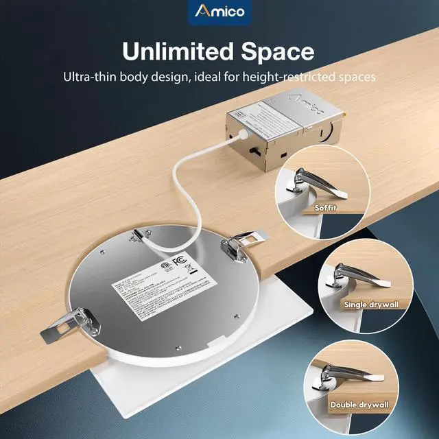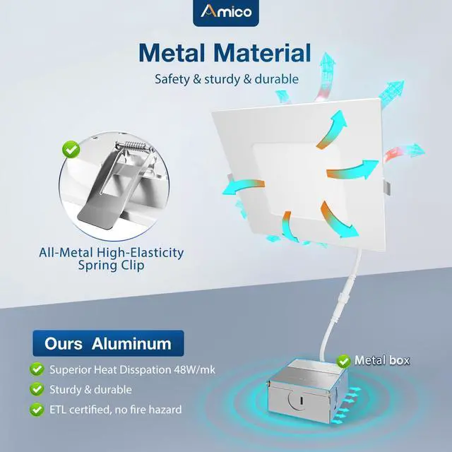 Effortless Installation: The round back design fits most existing round cutouts, making it easy to replace your current lighting with this modern square lightno need to re-drill holes. Creating new openings is also simple: use the included template to cut a round ceiling hole, connect the junction box, and secure the light with spring clips. The entire process takes only minutesquick and hassle-free.