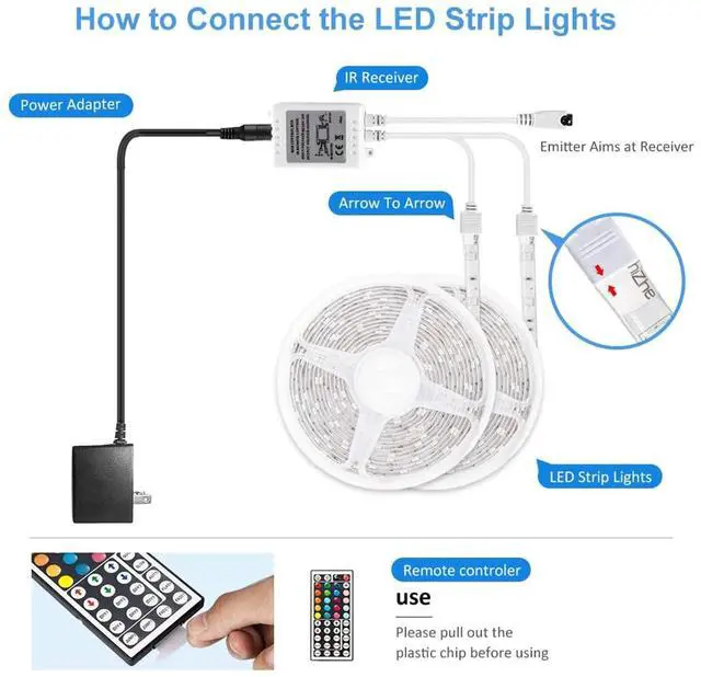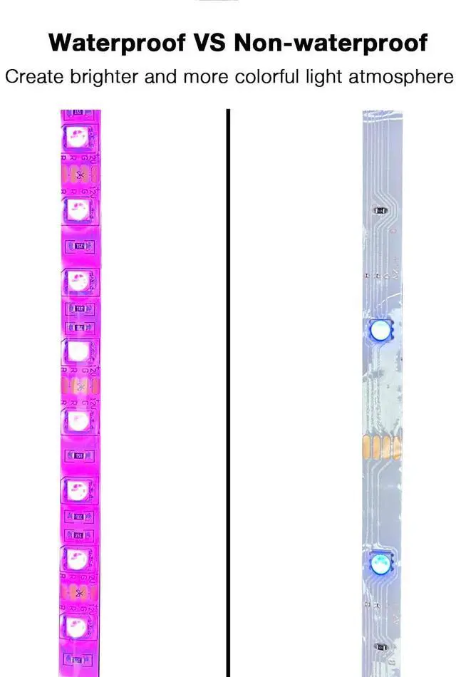 The strip lights are IP65 waterproof Color changing with 20 colors. 8 light pattern: Quick/ Slow/ Auto/ Flash/ 3 color jumpy change/ 7 color jumpy change/ 3 color fade change/ 7 color fade change and R/G/B increase and decrease control. It is for indoor and outdoor lighting decoration, such as kitchen, under cabinet, dining room, bedroom,TV Backlighting, automobile, mirror, balcony, patio, automobile, etc.