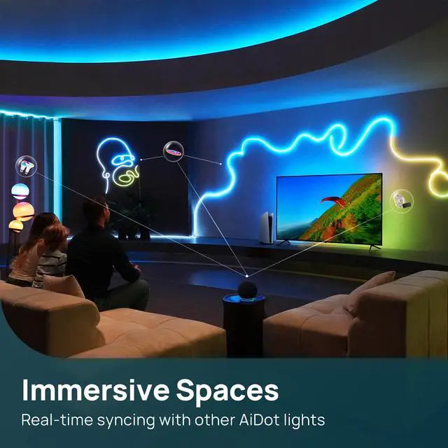 AiDot Ecosystem Integration Sync with TV backlights, bulbs, and smart devices Extend screen visuals to your walls for cinema-level immersion or whole-home color harmony.