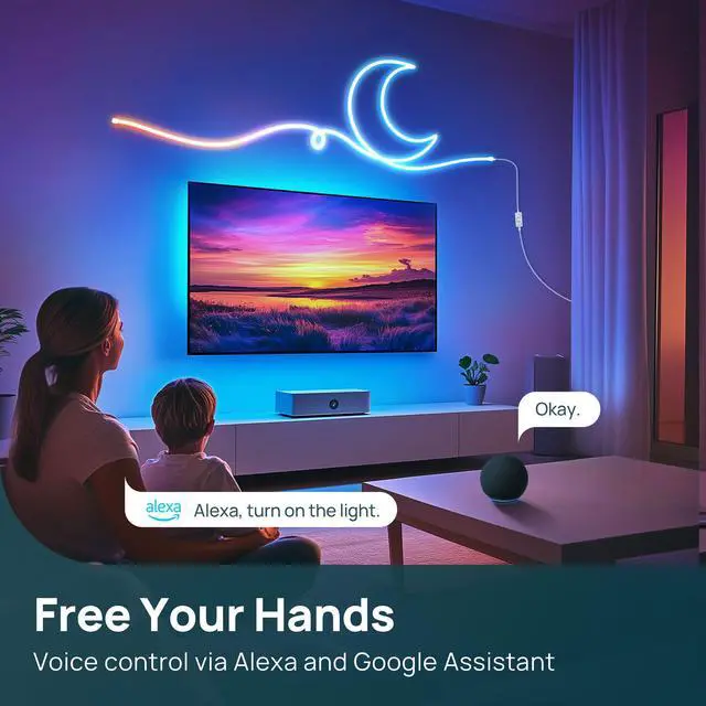 Brighter, Smoother, Smarter 84 LEDs/meter & 200 lumens Industry-leading brightness with zero hotspots, paired with Alexa/Google Assistant voice control for effortless adjustments.