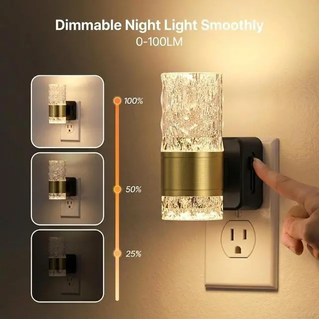 Dimmable Night Light from 0 to 100 Lumen With a convenient sliding dimmer switch to customize the brightness to suit your scenario. Whether you need a soft glow for the bathroom or a brighter light for the hallway, this dimmable night light offers versatile lighting options.