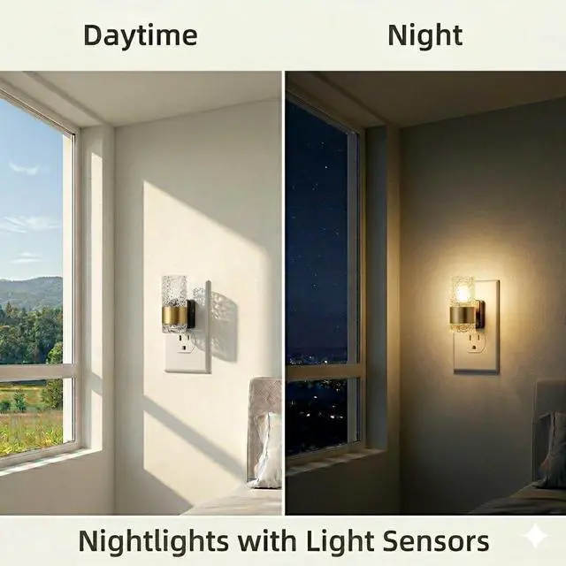 Light sensor night light Equipped with an high-sensitive light sensor, this plug in night light turns on in low-light conditions and off when its bright. This automatic feature ensures convenient, hands-free operation and energy efficiency, providing illumination exactly when needed.